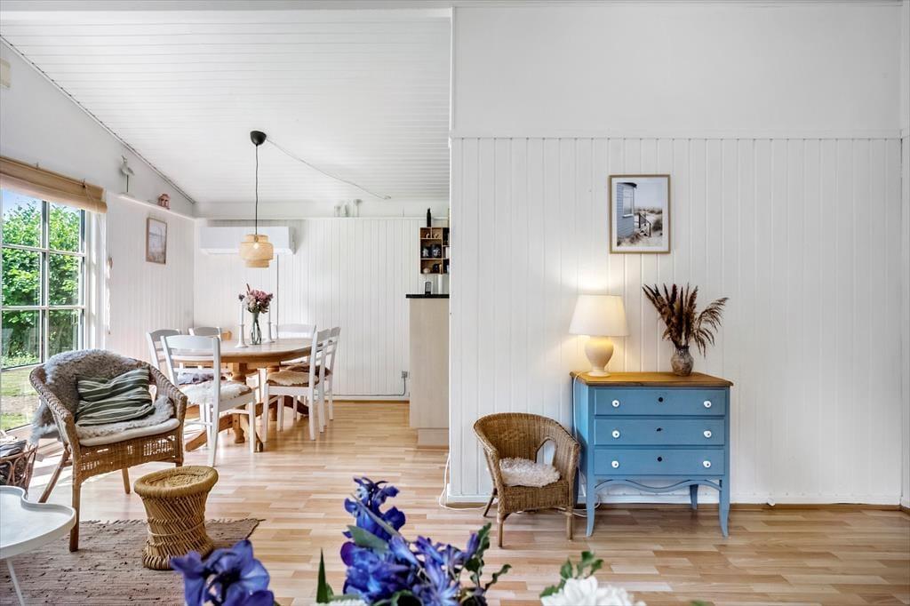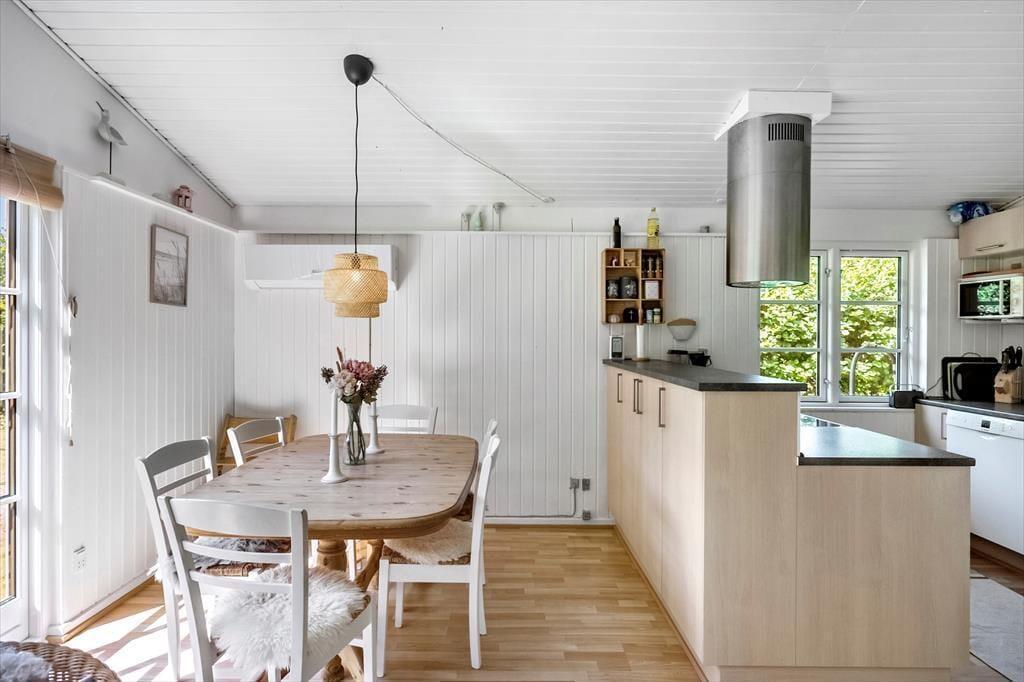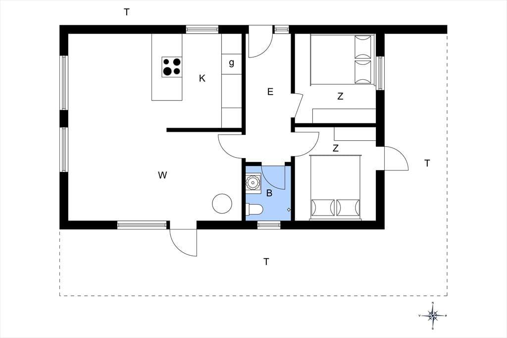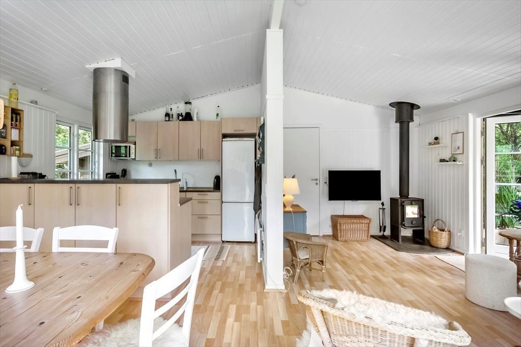 Dieses charmante Ferienhaus empfängt Sie mit einem Eingangsbereich und zwei geräumigen Schlafzimmern, beide mit Doppelbetten ausgestattet. Ein Badezimmer mit WC und Dusche ist ebenfalls vorhanden. Das Herzstück des Hauses ist die offene Wohnküche, in der Küche, Essbereich und gemütliche Sofaecke ineinander übergehen – von hier aus haben Sie direkten Zugang zu einer schönen Terrasse.