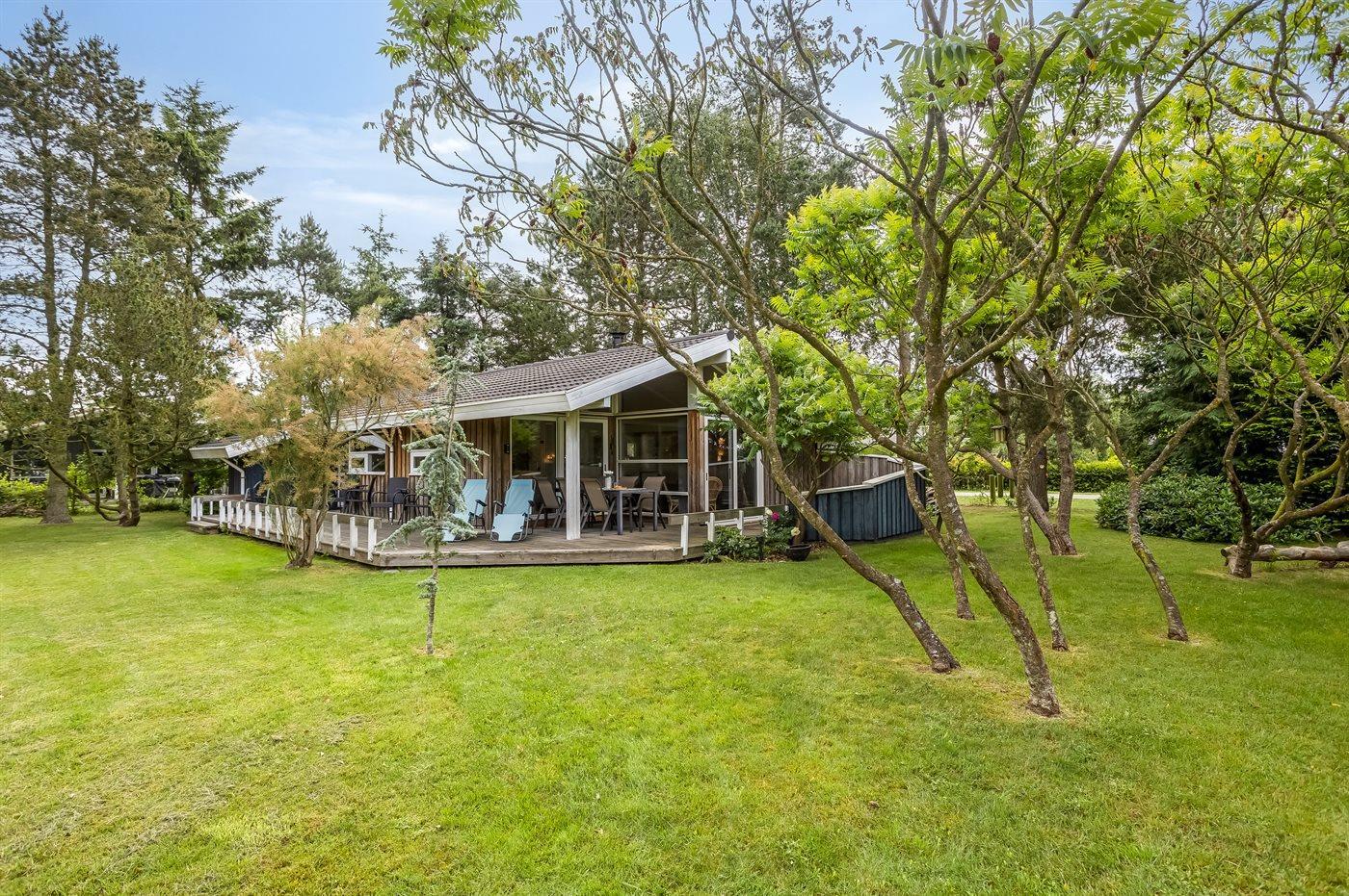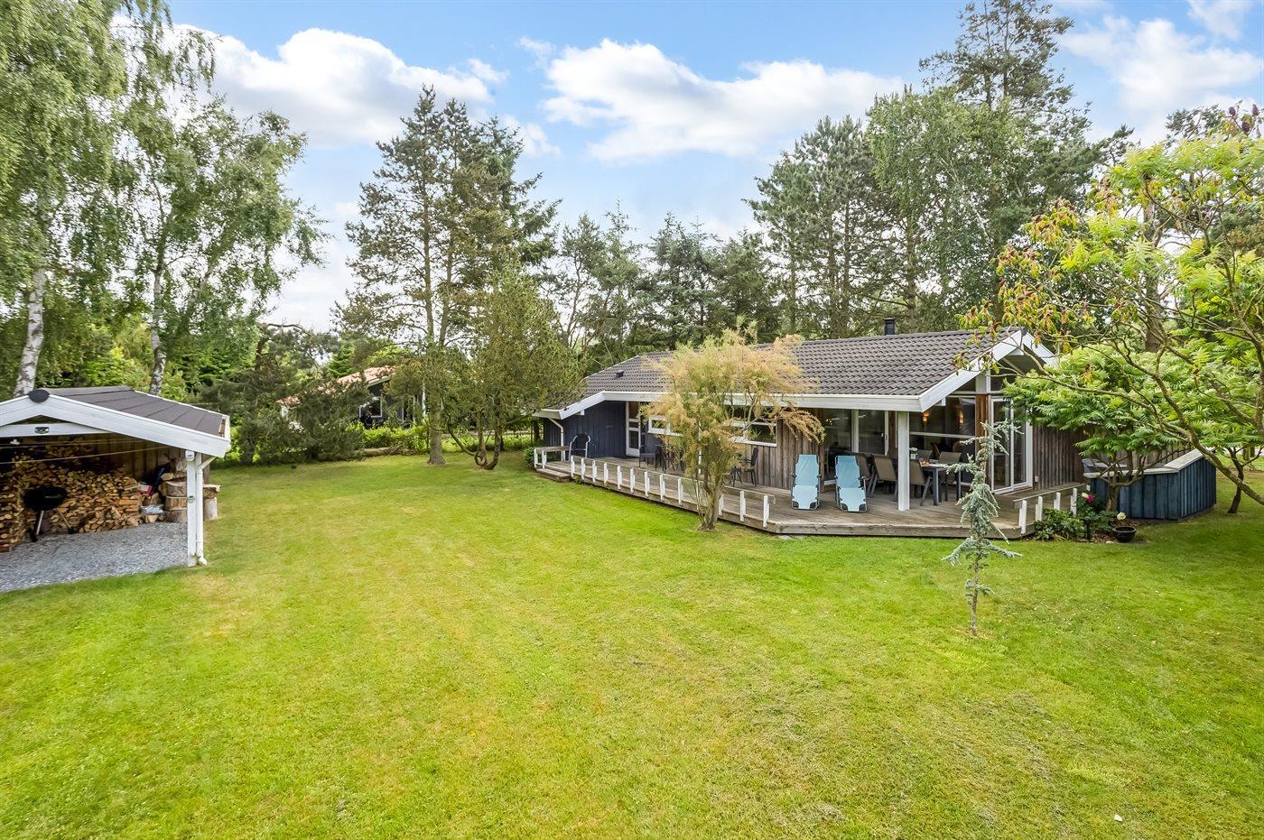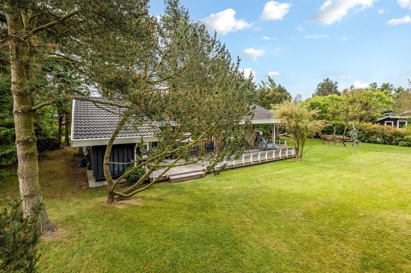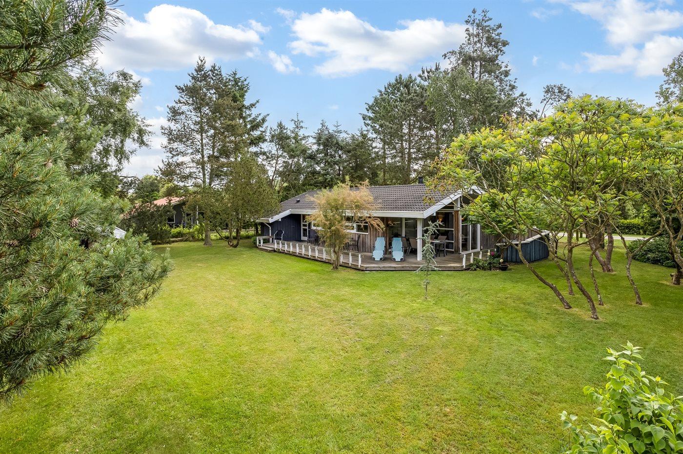 Schönes Ferienhaus auf einem herrlichen, hellen Grundstück, etwa 10 Min. Spaziergang von feinem Badestrand entfernt gelegen.