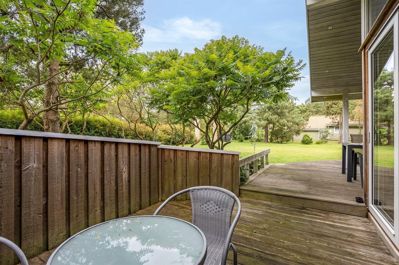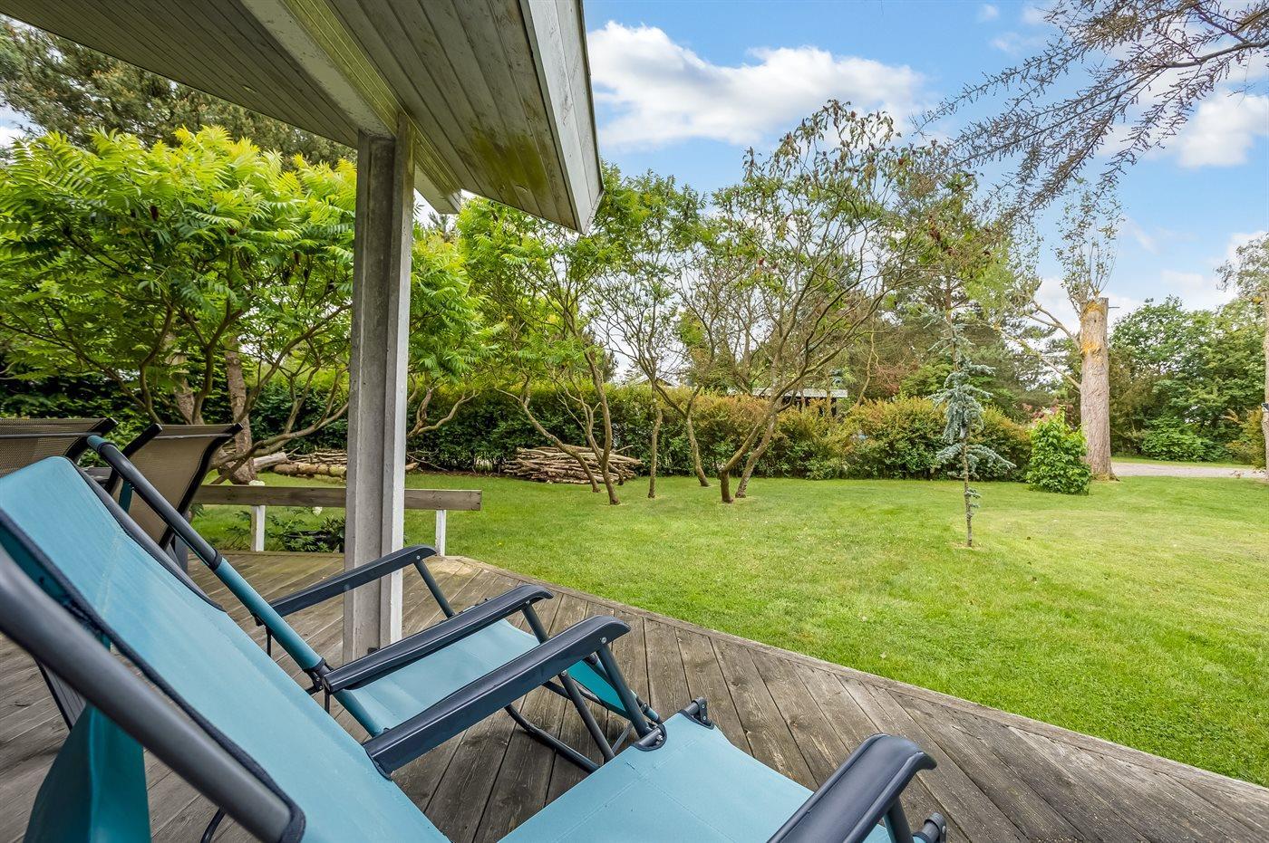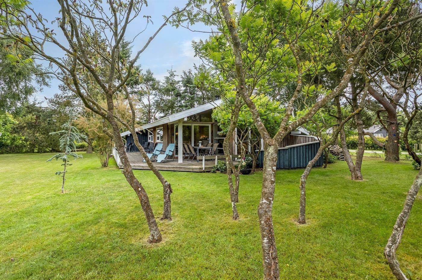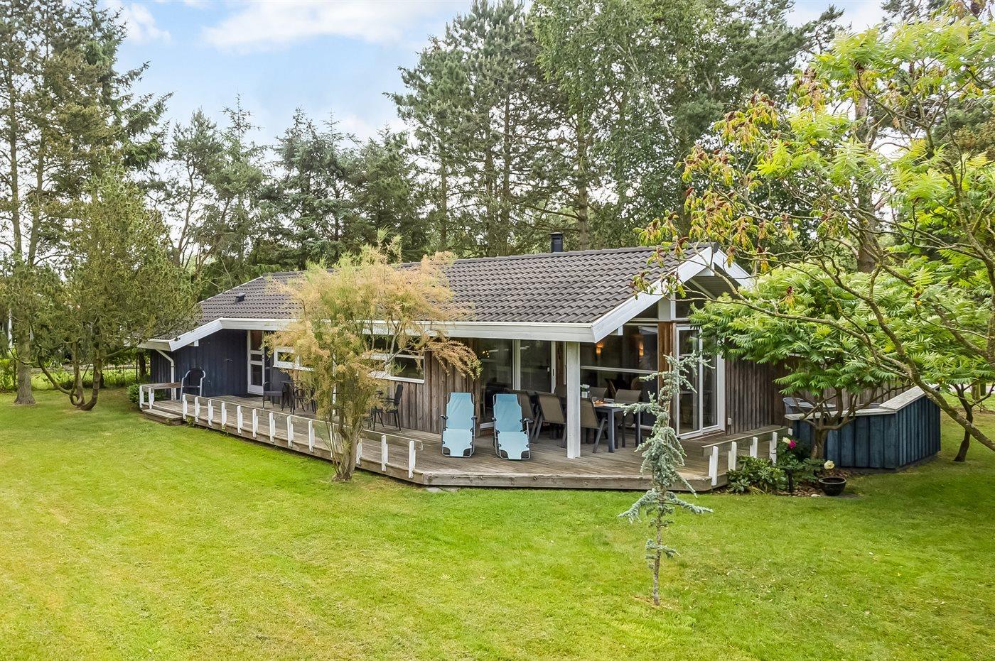 Schönes Ferienhaus auf einem herrlichen, hellen Grundstück, etwa 10 Min. Spaziergang von feinem Badestrand entfernt gelegen.