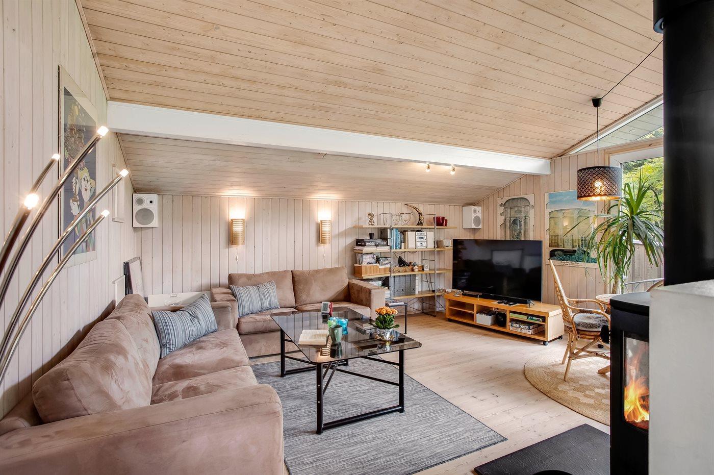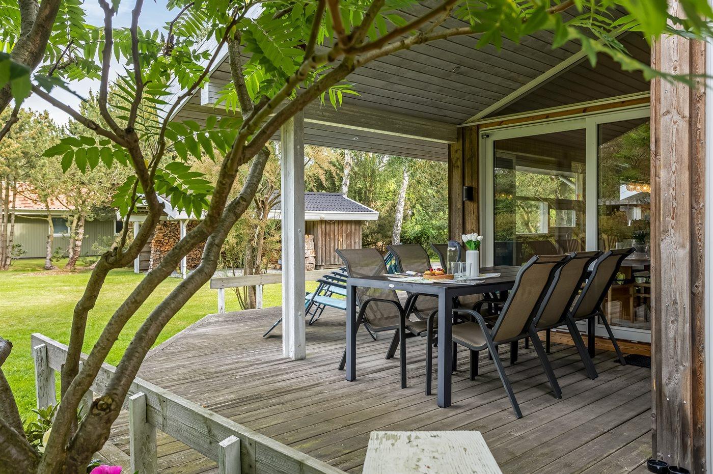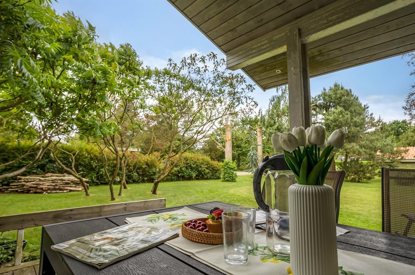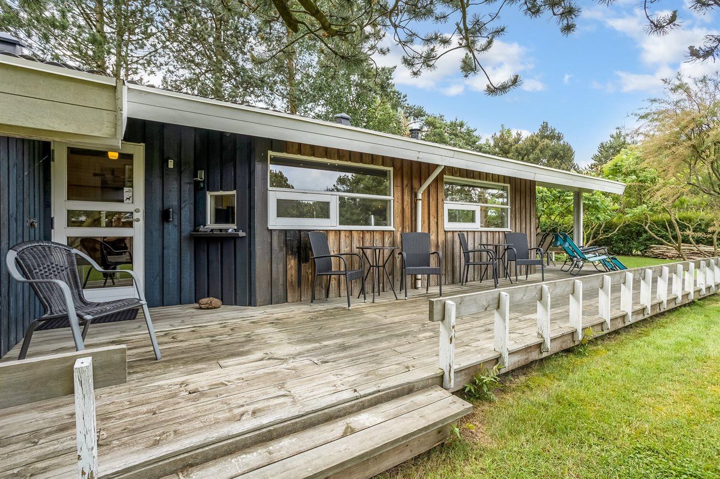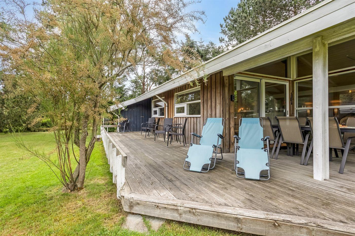 Schönes Ferienhaus auf einem herrlichen, hellen Grundstück, etwa 10 Min. Spaziergang von feinem Badestrand entfernt gelegen.