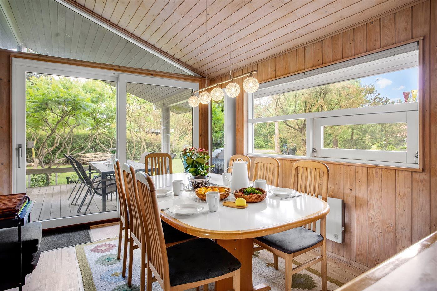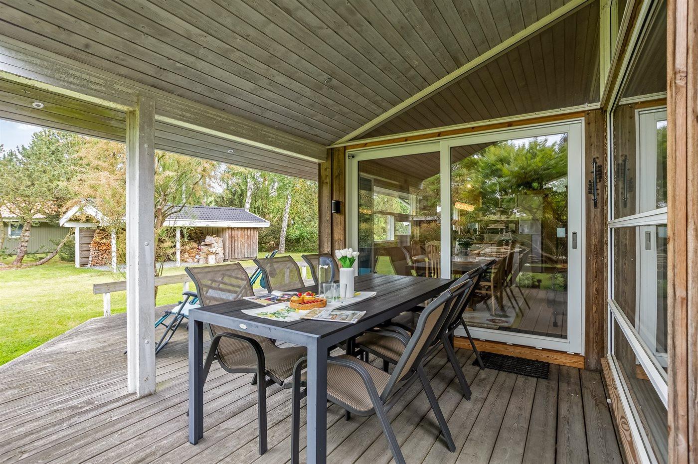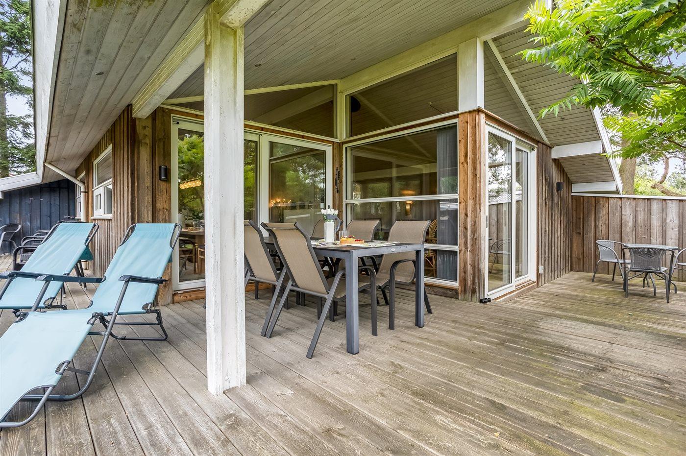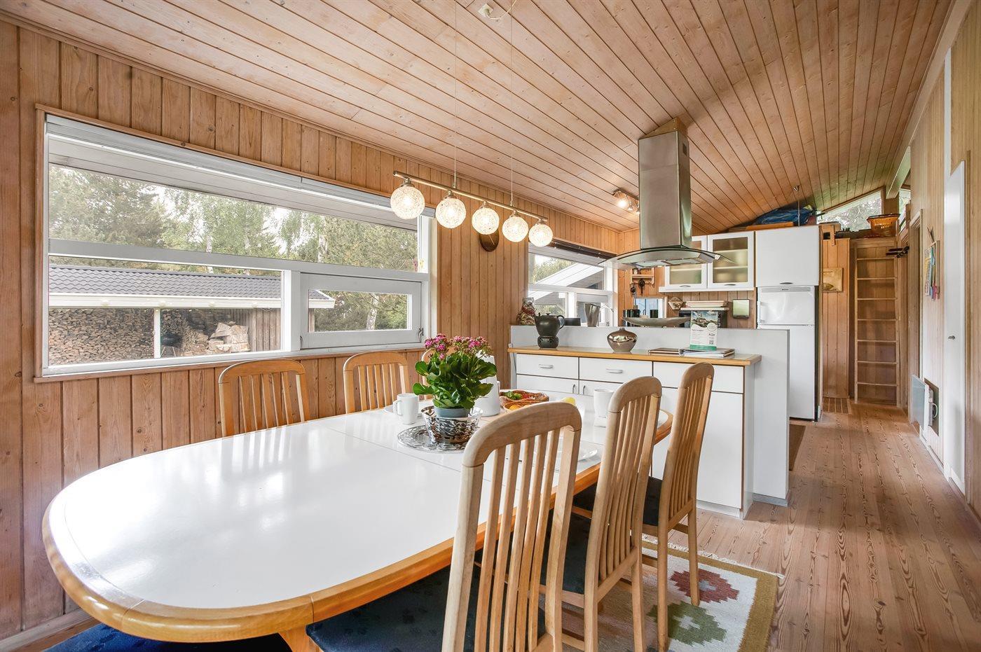 Schönes Ferienhaus auf einem herrlichen, hellen Grundstück, etwa 10 Min. Spaziergang von feinem Badestrand entfernt gelegen.