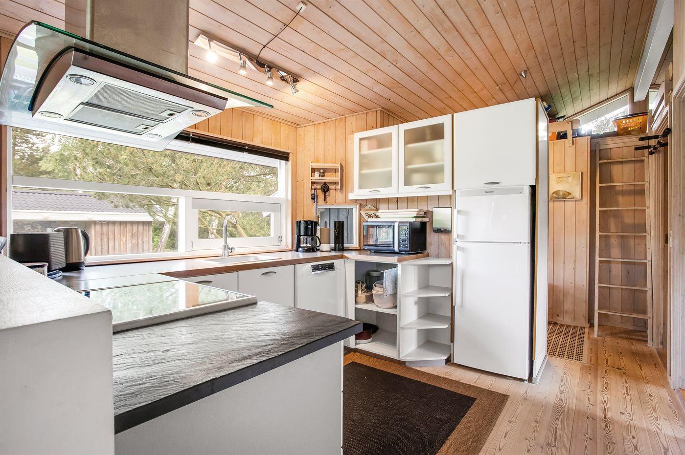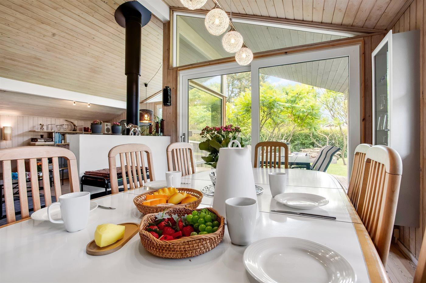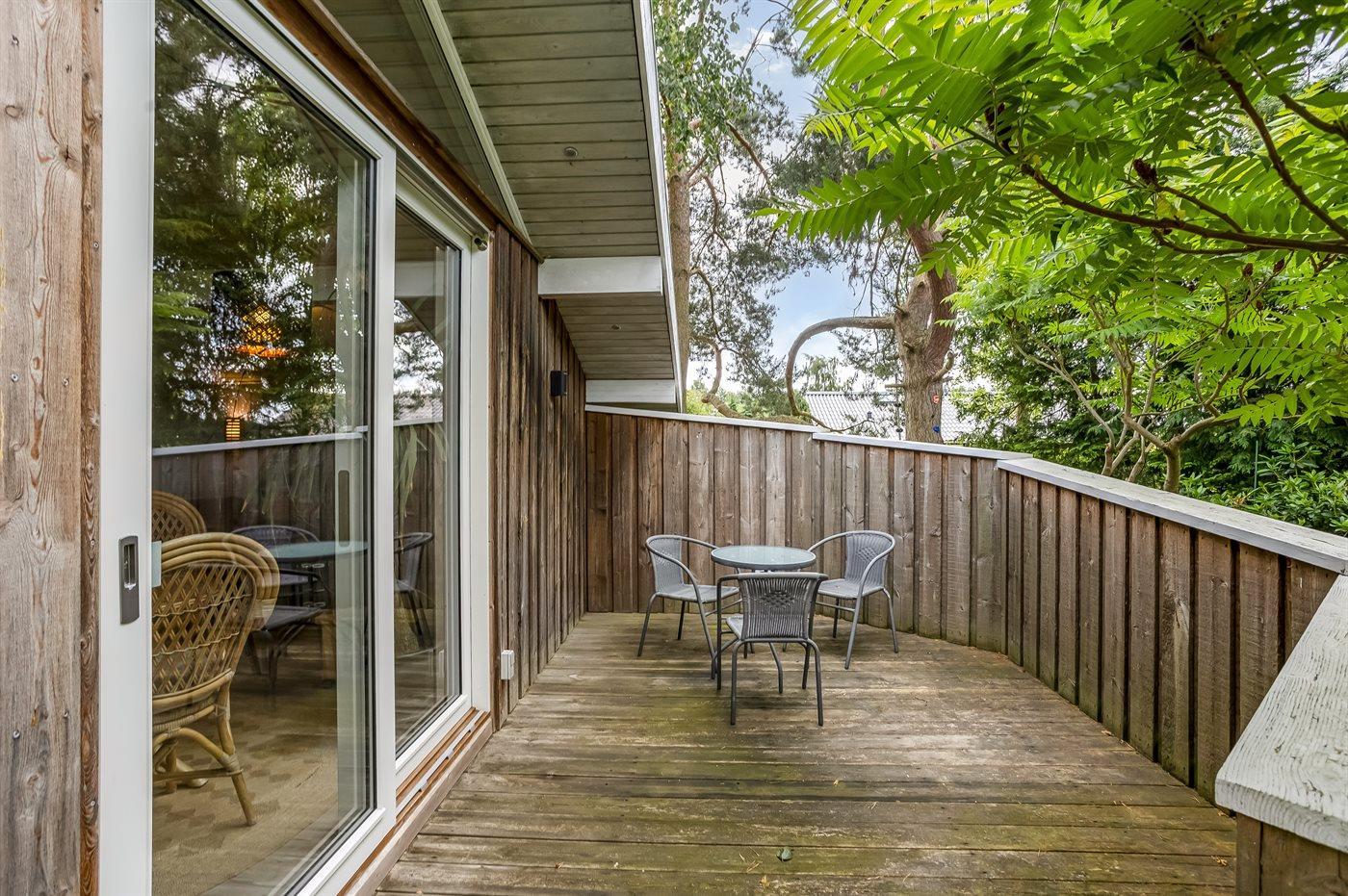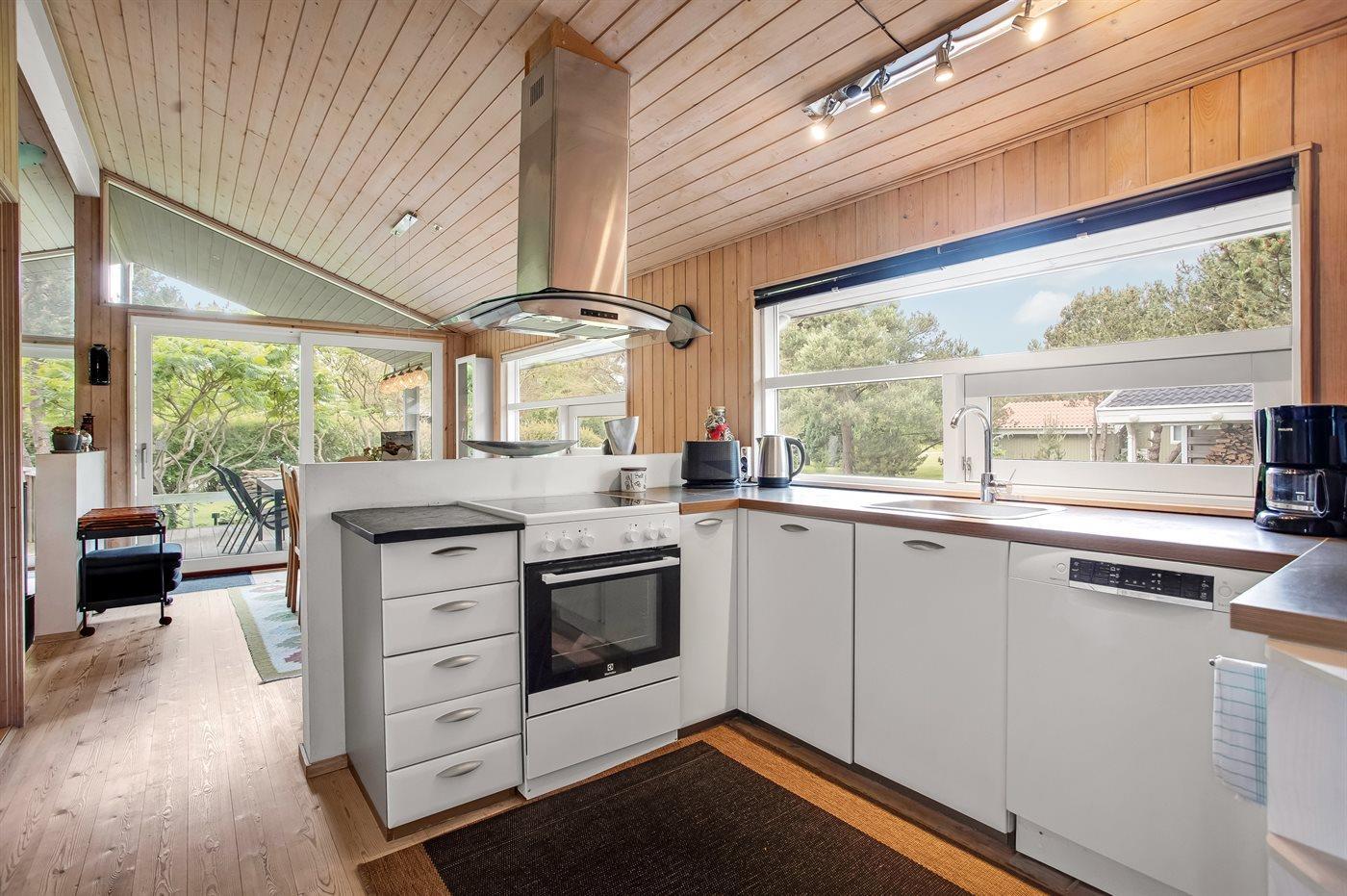 Schönes Ferienhaus auf einem herrlichen, hellen Grundstück, etwa 10 Min. Spaziergang von feinem Badestrand entfernt gelegen.