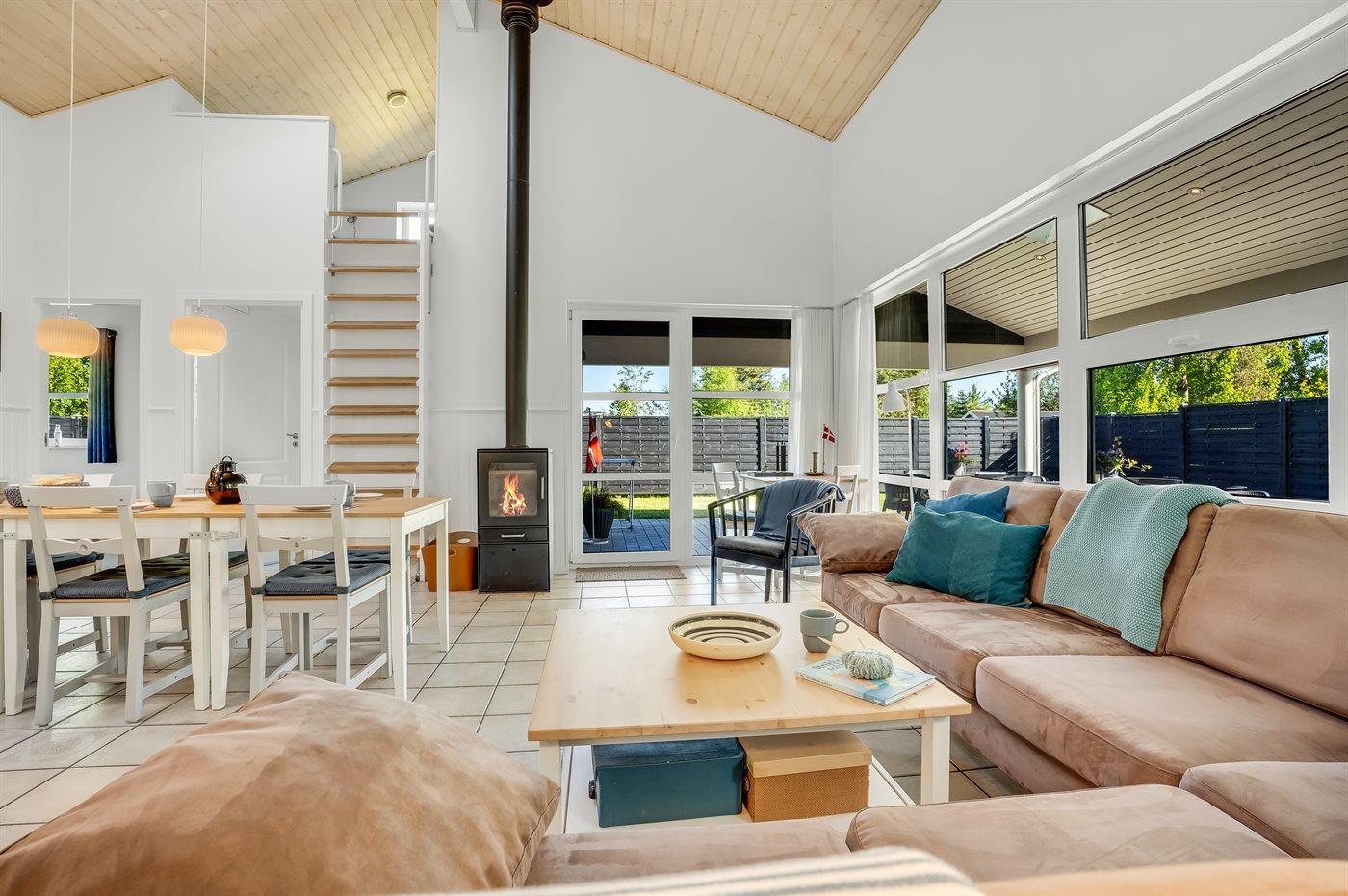 Das Herz des Hauses ist das große, helle Wohnzimmer, das offen mit der gut ausgestatteten Küche verbunden ist. Hier könnt ihr gemeinsam kochen, Brettspiele spielen oder einen Filmabend vor dem knisternden Kamin verbringen – der sorgt für Wärme und eine richtig gemütliche Stimmung.