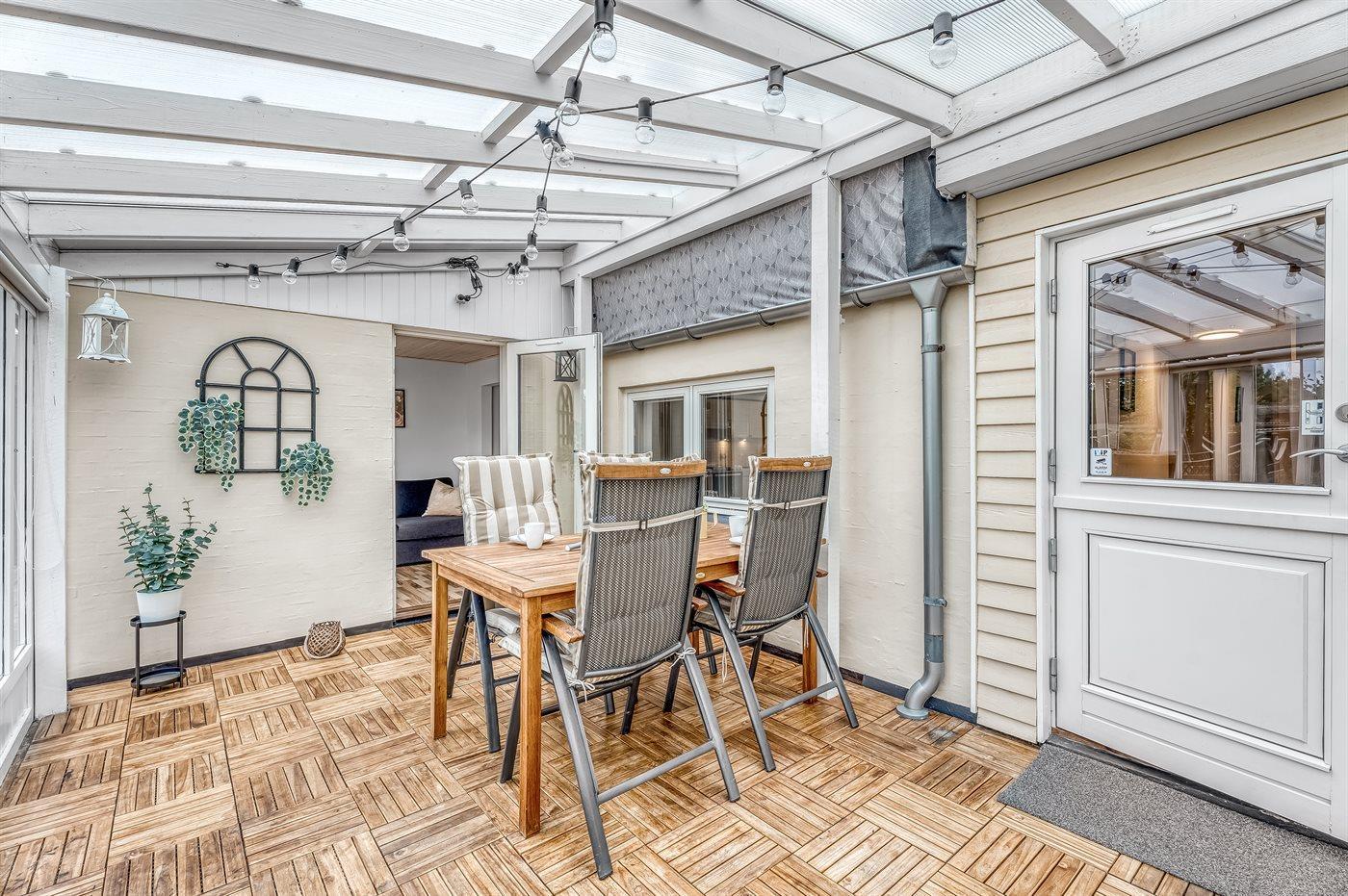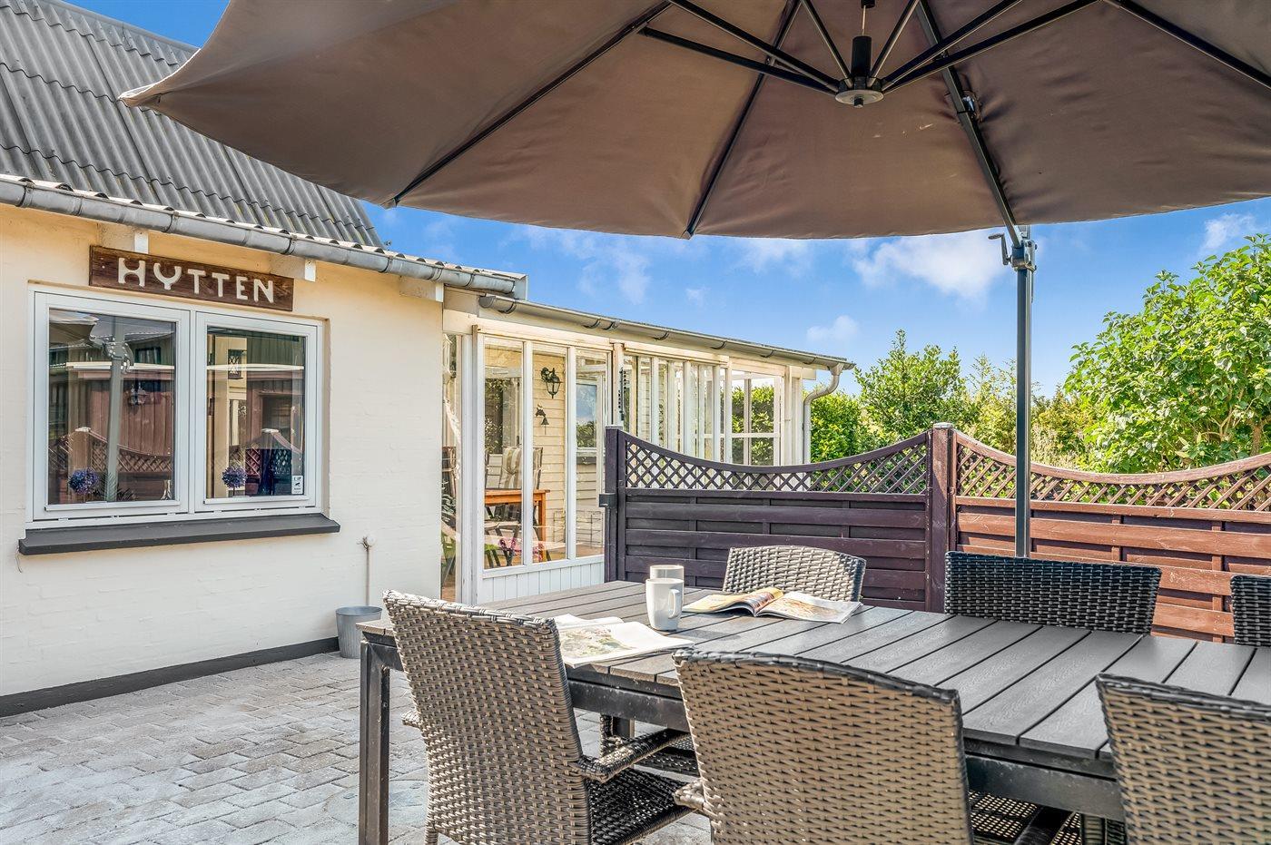 Vom Wohnzimmer aus hast du Zugang zum Wintergarten und weiter zur Terrasse mit Gartenmöbeln und Liegestühlen – hier kannst du entspannen, ein gutes Buch lesen oder eine Mahlzeit auf dem Kugelgrill zubereiten. Von der kleinen Terrasse auf der Rückseite des Hauses aus hast du Blick auf die Felder.