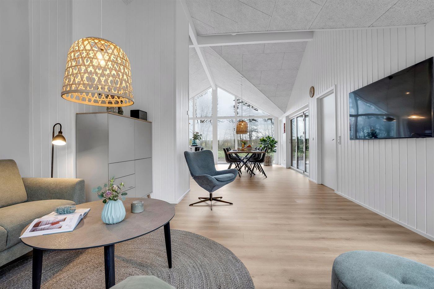 Dieses einzigartige, neu gebaute Ferienhaus für 8 Personen, liegt in erster Reihe am Deich und am besten Sandbadestrand Dänemarks in Marielyst. Zum Haus gehört unter anderem ein großer Außen-Whirlpool (mit Standwasser) für 6 Personen – hier kannst du im warmen Wasser sitzen, den Sternenhimmel betrachten und dem Rauschen des Meeres lauschen. Außerdem gibt es eine Außensauna mit Zugang über die schöne, teilweise überdachte Terrasse.