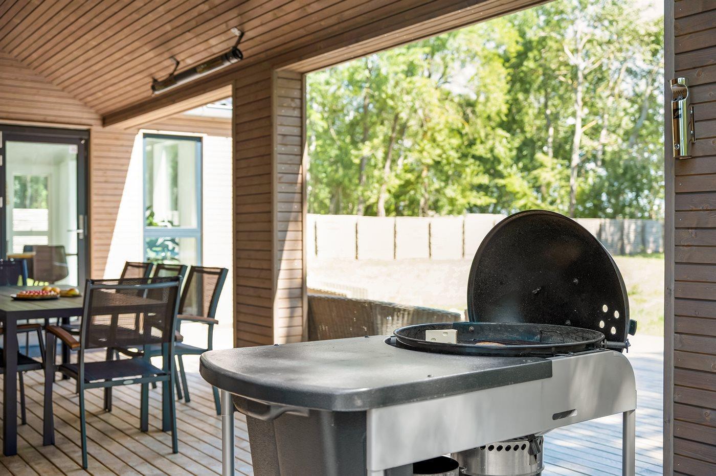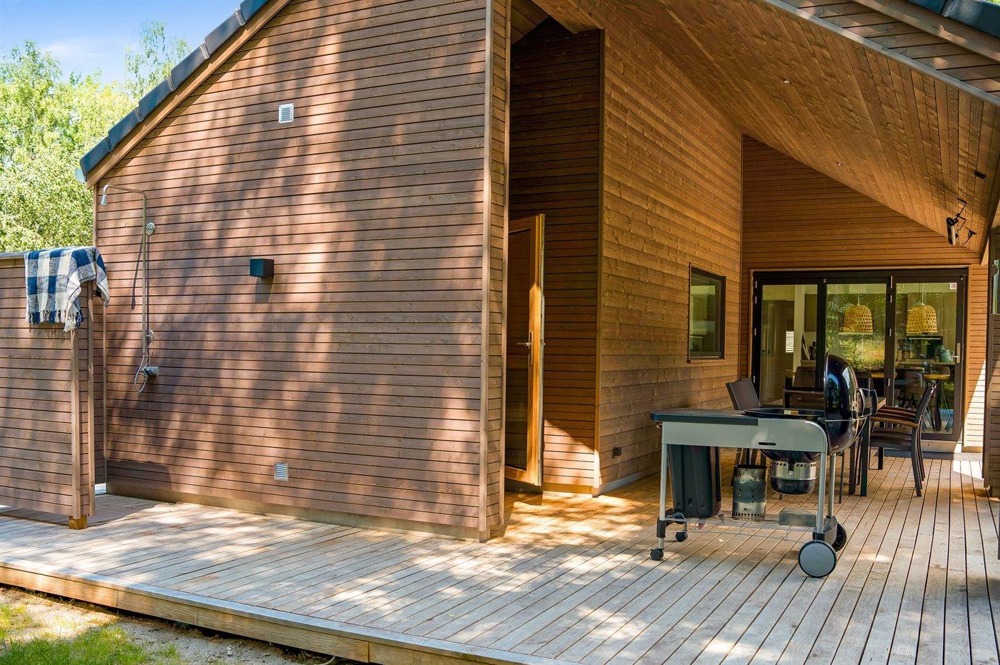 Die Ferienunterkunft liegt auf einem 2028 m² großen Naturgrundstück. Die Entfernung zum Meer beträgt 80 m. Die nächste Einkaufsmöglichkeit liegt 250 m entfernt. Es steht ein offenes Terrassenareal zur Verfügung. Außerdem gibt es überdachte Terrasse. Geräteraum. Trampolin. Außendusche. Es steht ein Grill zur Verfügung. Es steht ein Carport zur Verfügung. Es ist ein Ladestecker für Elektroautos installiert. CEE Stecker. Mit einer Ladeleistung von 11 kW. Parkplatz auf dem Grundstück.