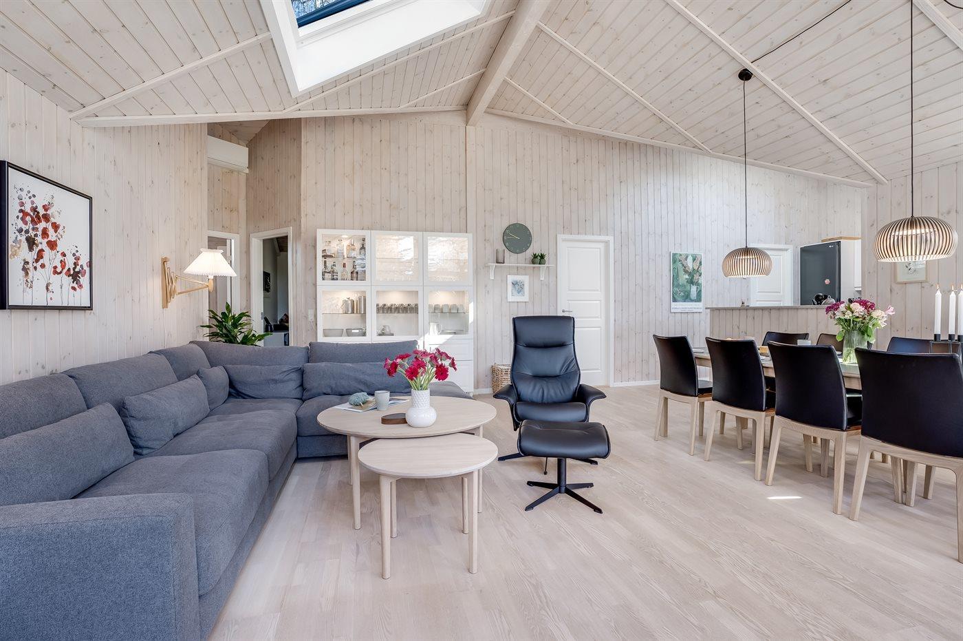 Das Haus ist gemütlich eingerichtet und verfügt über eine große Terrasse, die teils überdacht, teils offen ist, mit ausreichend Platz zum Entspannen in Lounge-Möbeln und auf Liegestühlen usw. Zudem gibt es einen Grill für die schönen Sommerabende. Unter der abgeschirmten Außendusche kann man sich nach einem Strandbesuch oder einem Ballspiel auf dem schönen Grundstück erfrischen.