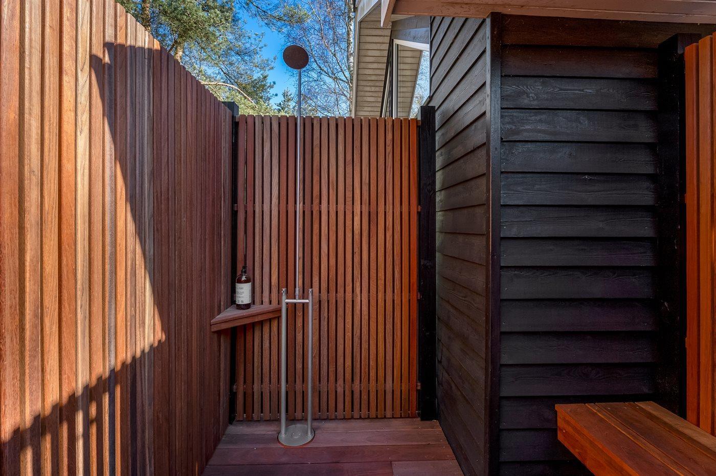 Die Ferienunterkunft liegt auf einem 903 m² großen Gartengrundstück. Die Entfernung zum Meer beträgt 600 m. Es gibt einen Badesteg in der Nähe. Die nächste Einkaufsmöglichkeit liegt 100 m entfernt. In einem Abstand von 3500 m gibt es einen Golfplatz. Es steht ein offenes Terrassenareal zur Verfügung. Außerdem gibt es überdachte Terrasse. Geräteraum. Sandkasten. Trampolin.Lagerfeuerstelle. Außendusche. Es stehen 2 Grills zur Verfügung. Es stehen ein Holzkohlegrill und ein großer Gasgrill zur Verfügung. Es ist ein Ladestecker für Elektroautos installiert. Mit einer Ladeleistung von 22 kW. Parkplatz auf dem Grundstück.
