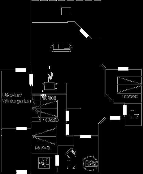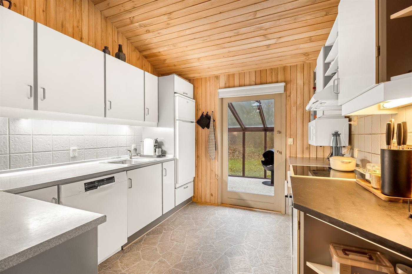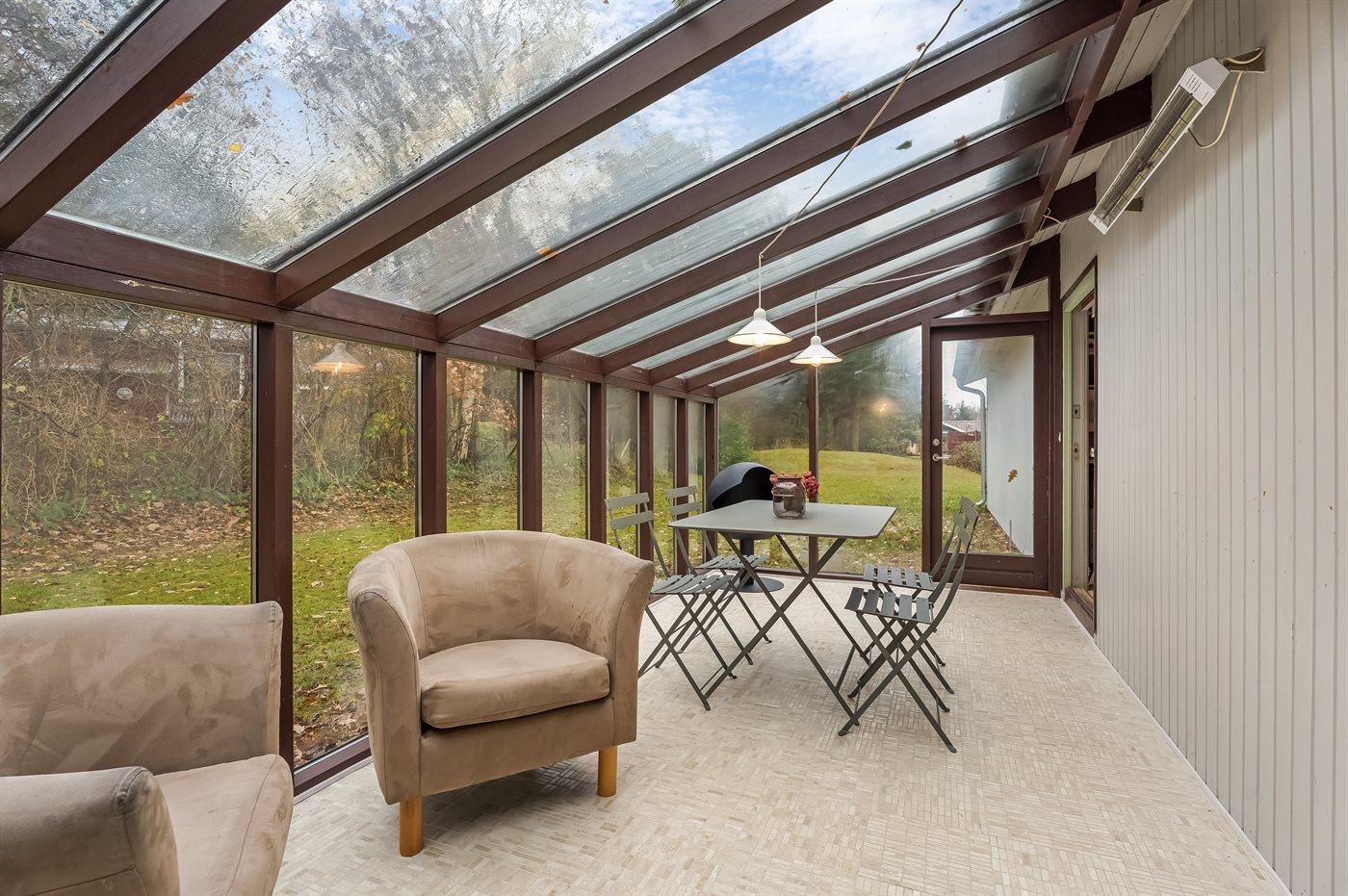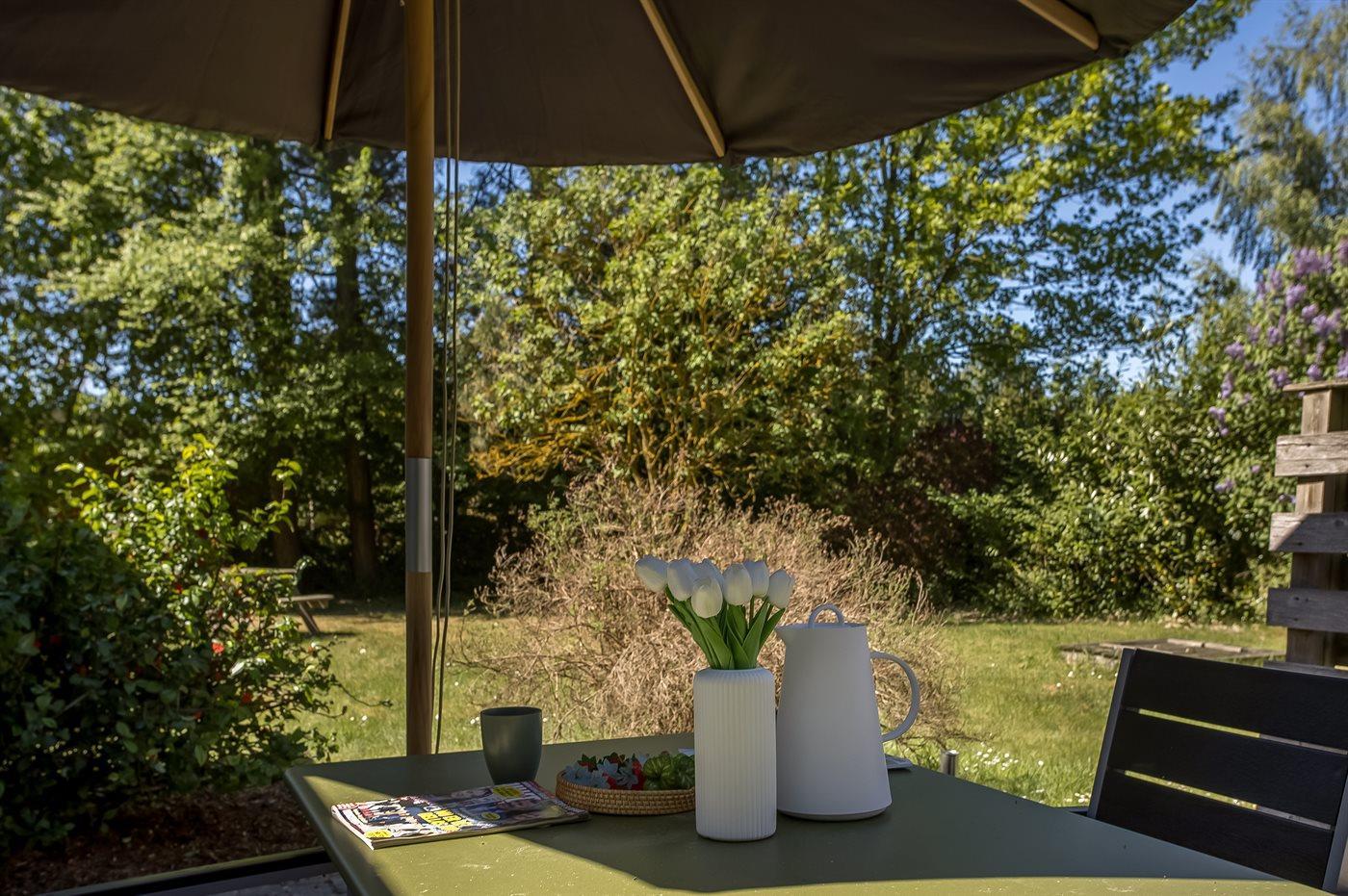 Zum Haus gehören sowohl eine offene als auch eine überdachte Terrasse, auf denen du schöne Stunden im Freien verbringen kannst. Außerdem gibt es einen Wintergarten mit großen Glasfronten und Blick auf den herrlichen Garten. Im Garten hast du die Möglichkeit, die Sonne zu genießen, und auch für die kleinen Urlaubsgäste ist gesorgt – da sowohl eine Schaukel als auch ein Sandkasten zur Verfügung stehen.