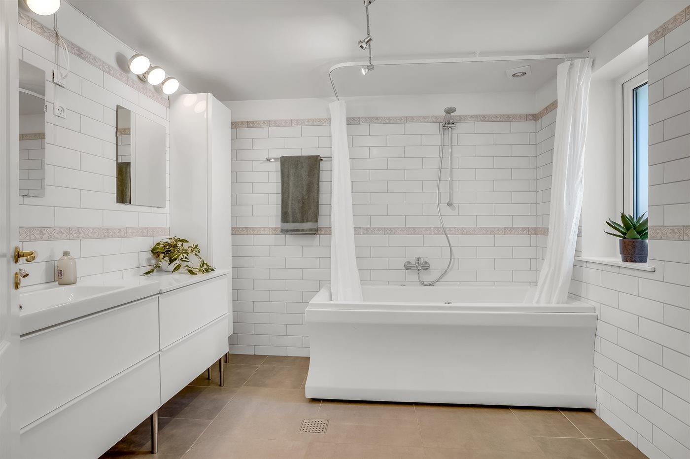 Es gibt 1 Badezimmer mit Fußbodenheizung, Badewanne sowie Handbrause und 1 Badezimmer mit Fußbodenheizung und Duschnische.