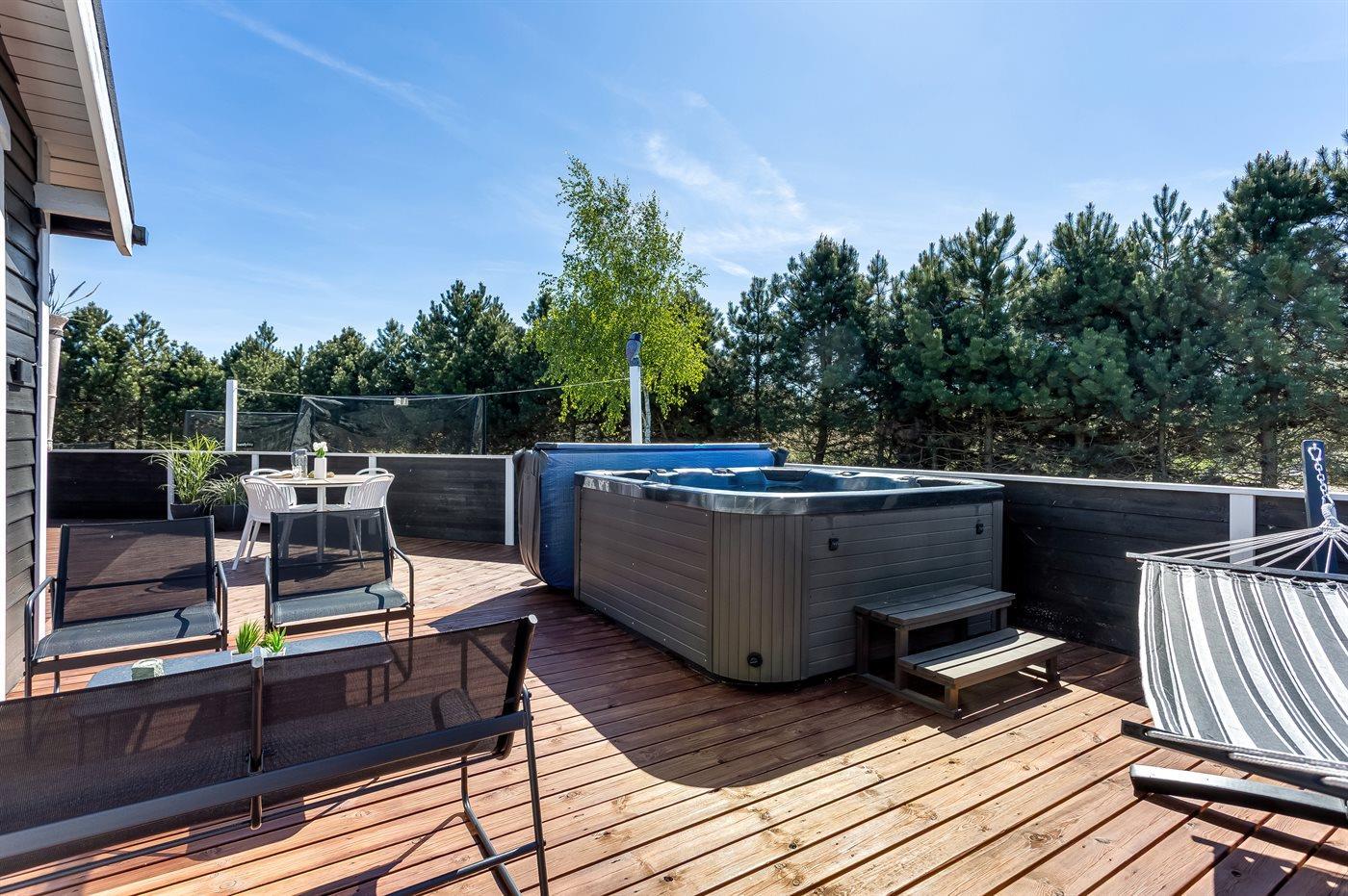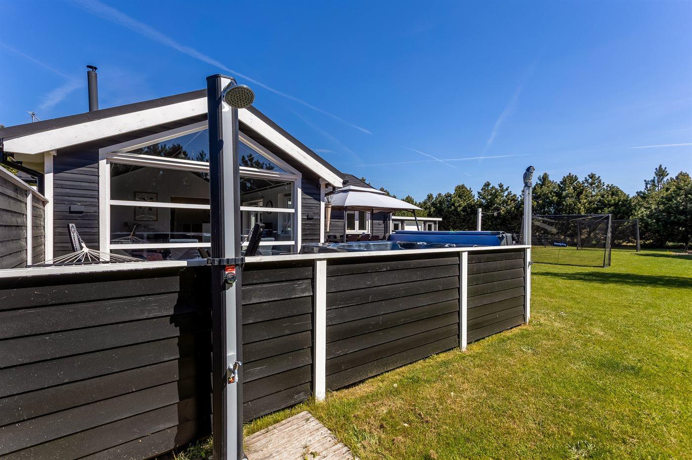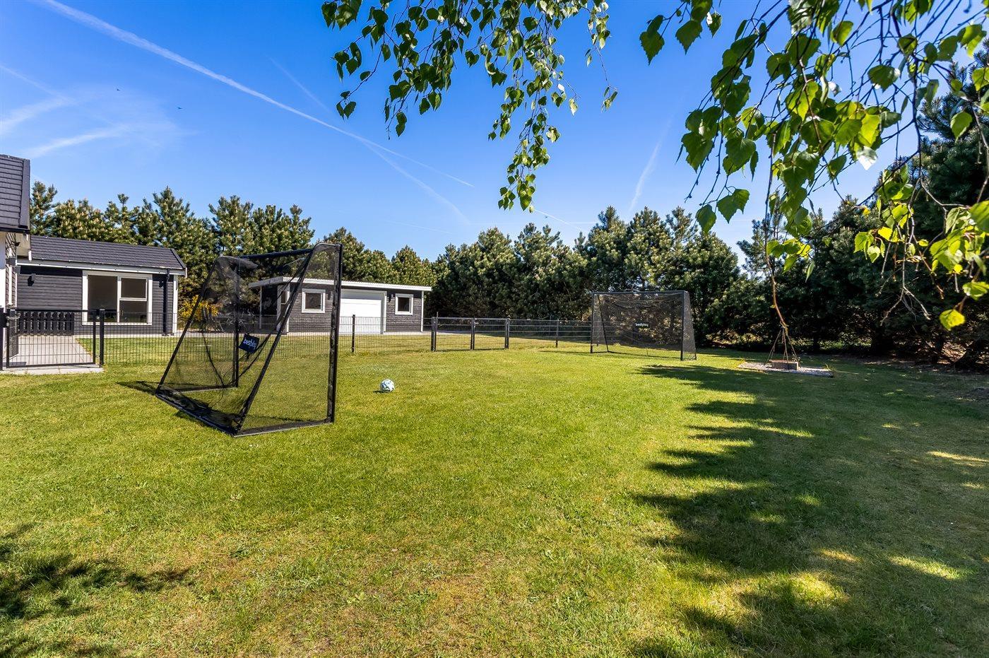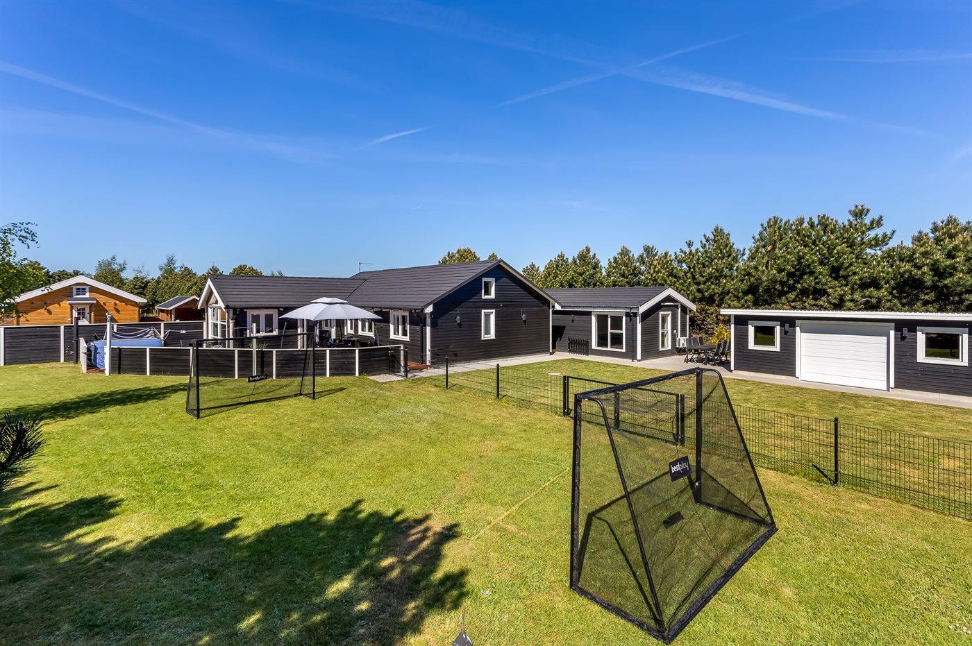 Die Ferienunterkunft liegt auf einem 1455 m² großen Naturgrundstück. Das Grundstück ist eingezäunt. Die Entfernung zum Meer beträgt 1300 m. Die nächste Einkaufsmöglichkeit liegt 1000 m entfernt. In einem Abstand von 1000 m gibt es einen Golfplatz. Es steht ein geschlossenes Terrassenareal zur Verfügung. Trampolin. Fußballtor.Lagerfeuerstelle. Es steht ein Grill zur Verfügung. Es ist ein Ladestecker für Elektroautos installiert. Ladestecker Typ 2. Mit einer Ladeleistung von 11 kW. Parkplatz auf dem Grundstück.
