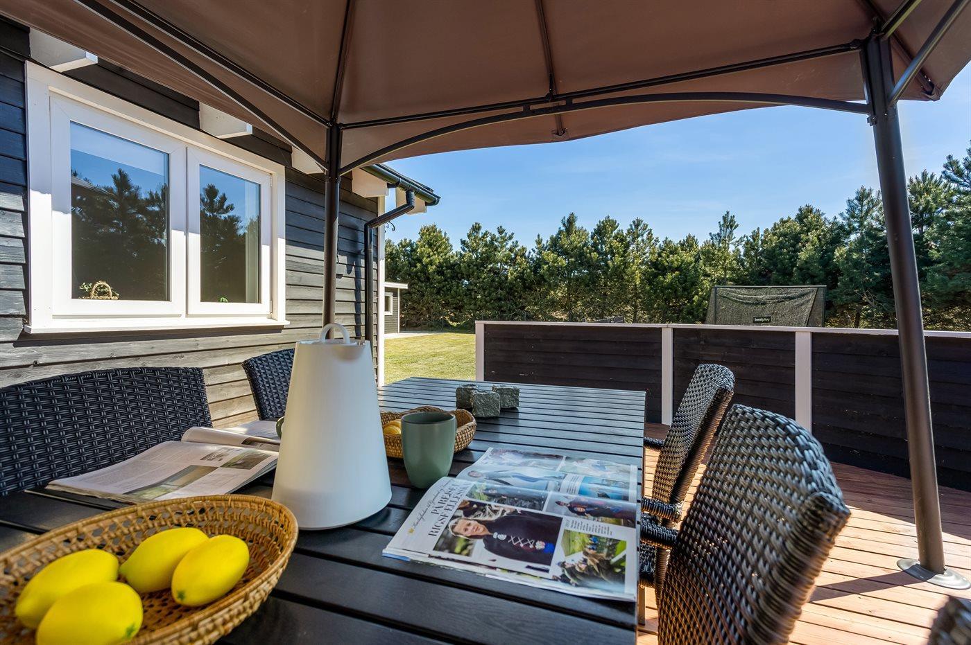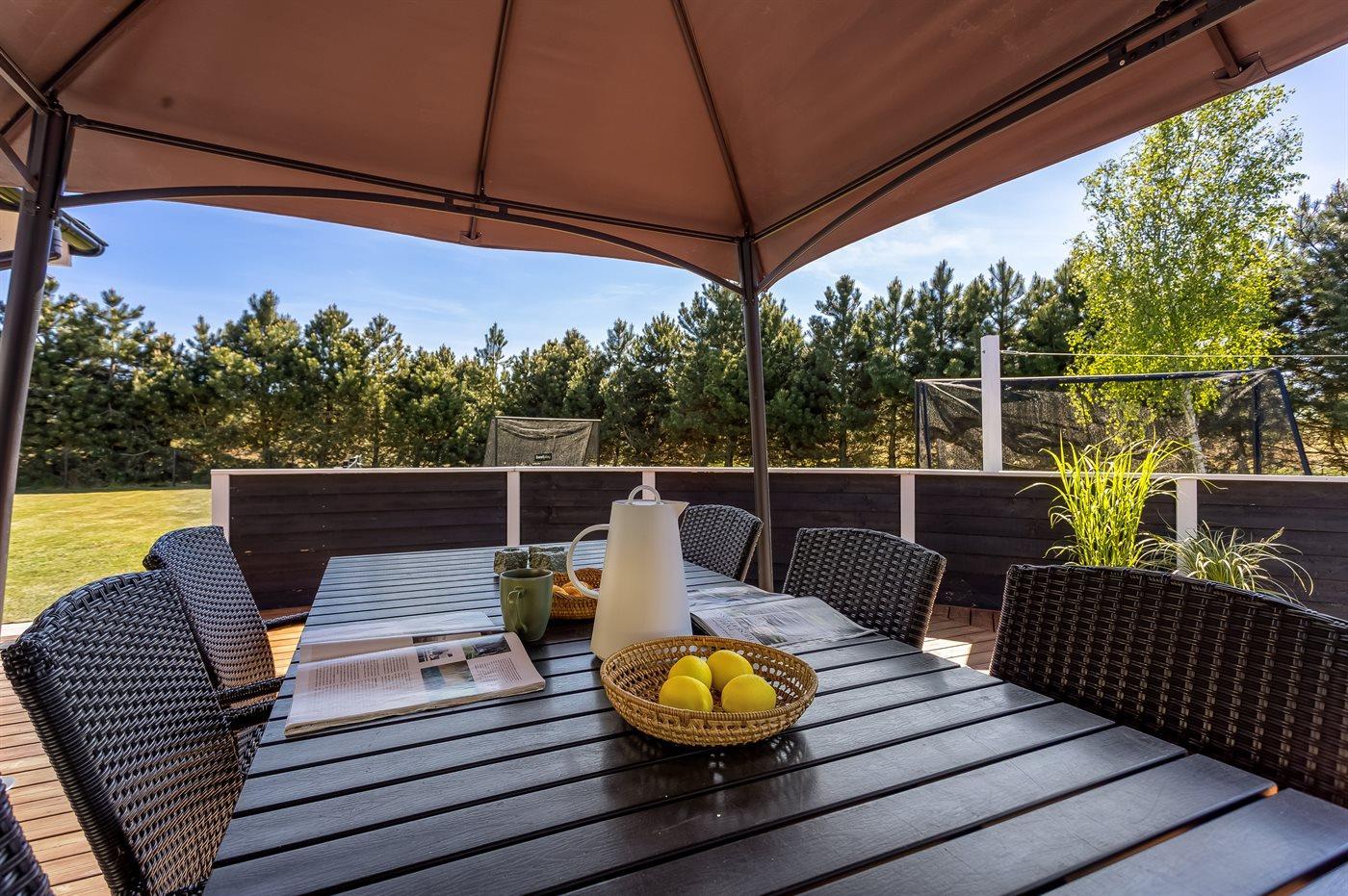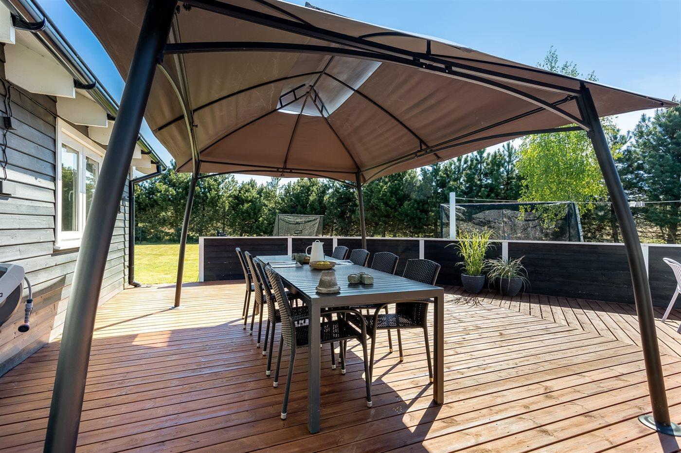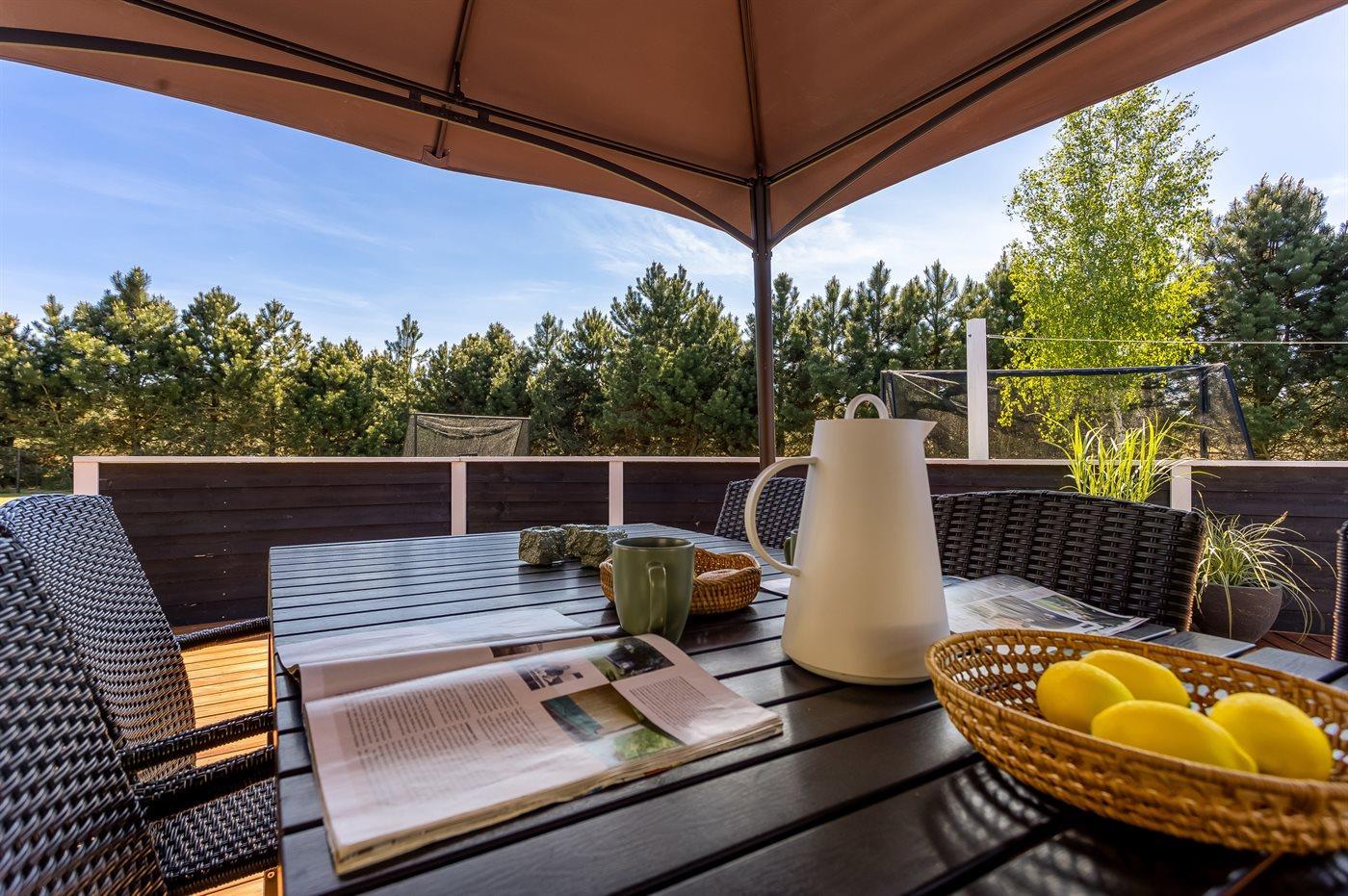 Die Ferienunterkunft liegt auf einem 1455 m² großen Naturgrundstück. Das Grundstück ist eingezäunt. Die Entfernung zum Meer beträgt 1300 m. Die nächste Einkaufsmöglichkeit liegt 1000 m entfernt. In einem Abstand von 1000 m gibt es einen Golfplatz. Es steht ein geschlossenes Terrassenareal zur Verfügung. Trampolin. Fußballtor.Lagerfeuerstelle. Es steht ein Grill zur Verfügung. Es ist ein Ladestecker für Elektroautos installiert. Ladestecker Typ 2. Mit einer Ladeleistung von 11 kW. Parkplatz auf dem Grundstück.