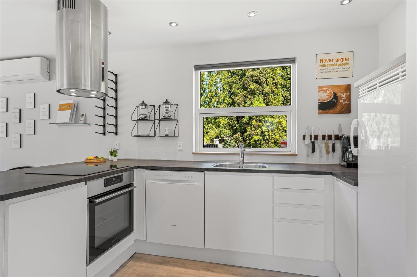 Die Küche ist mit Kühlschrank ausgestattet. Außerdem gibt es 4 Induktions-Kochzonen, Umluftofen sowie Geschirrspüler.