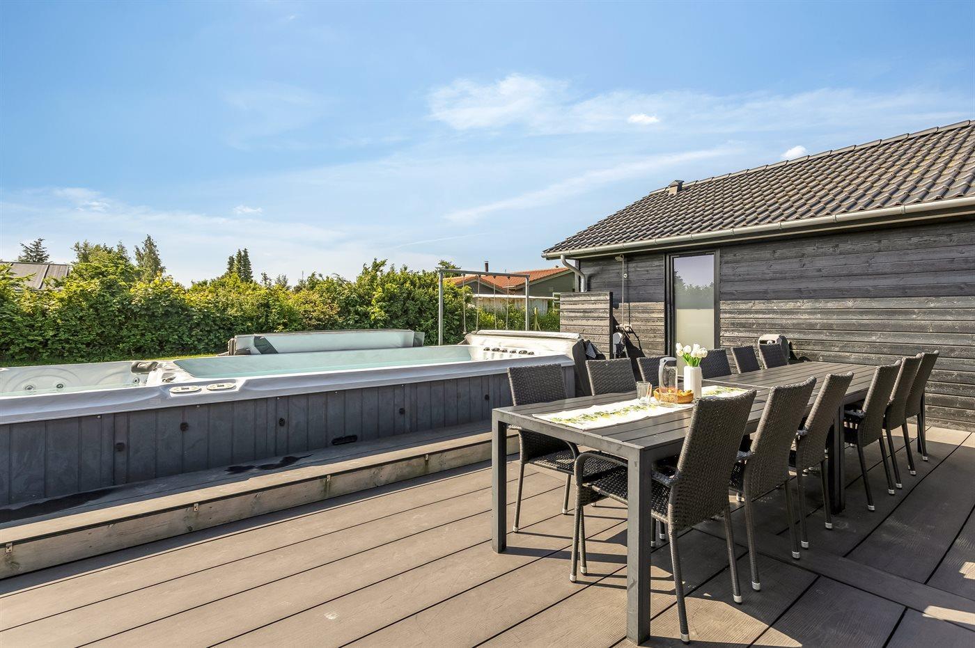 Ein schönes und gemütliches Ferienhaus mit einem Outdoor-Swimspa für 5 + 2 Personen sowie einem Indoor-Whirlpool für 2 Personen, einer Sauna und einem großen Aktivitätsraum u.v.m., nur einen Steinwurf vom Zentrum von Marielyst und einem der besten Sandstrände Dänemarks entfernt.