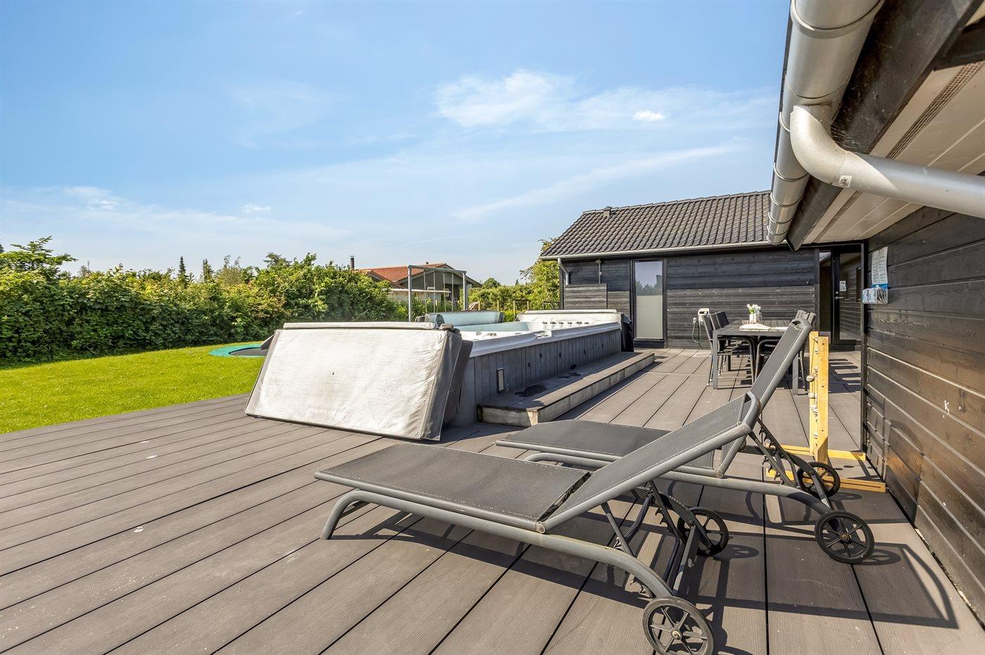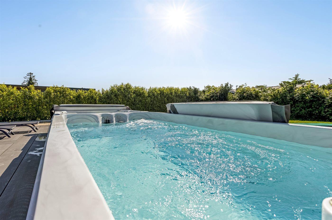 Modernes Ferienhaus nahe Marielysts Sandstrand mit Swimspa, Sauna und Aktivitätsraum für erholsame Tage.