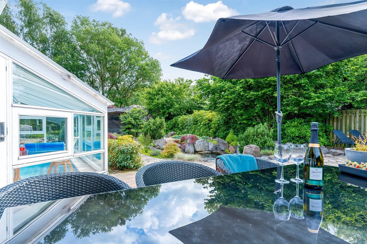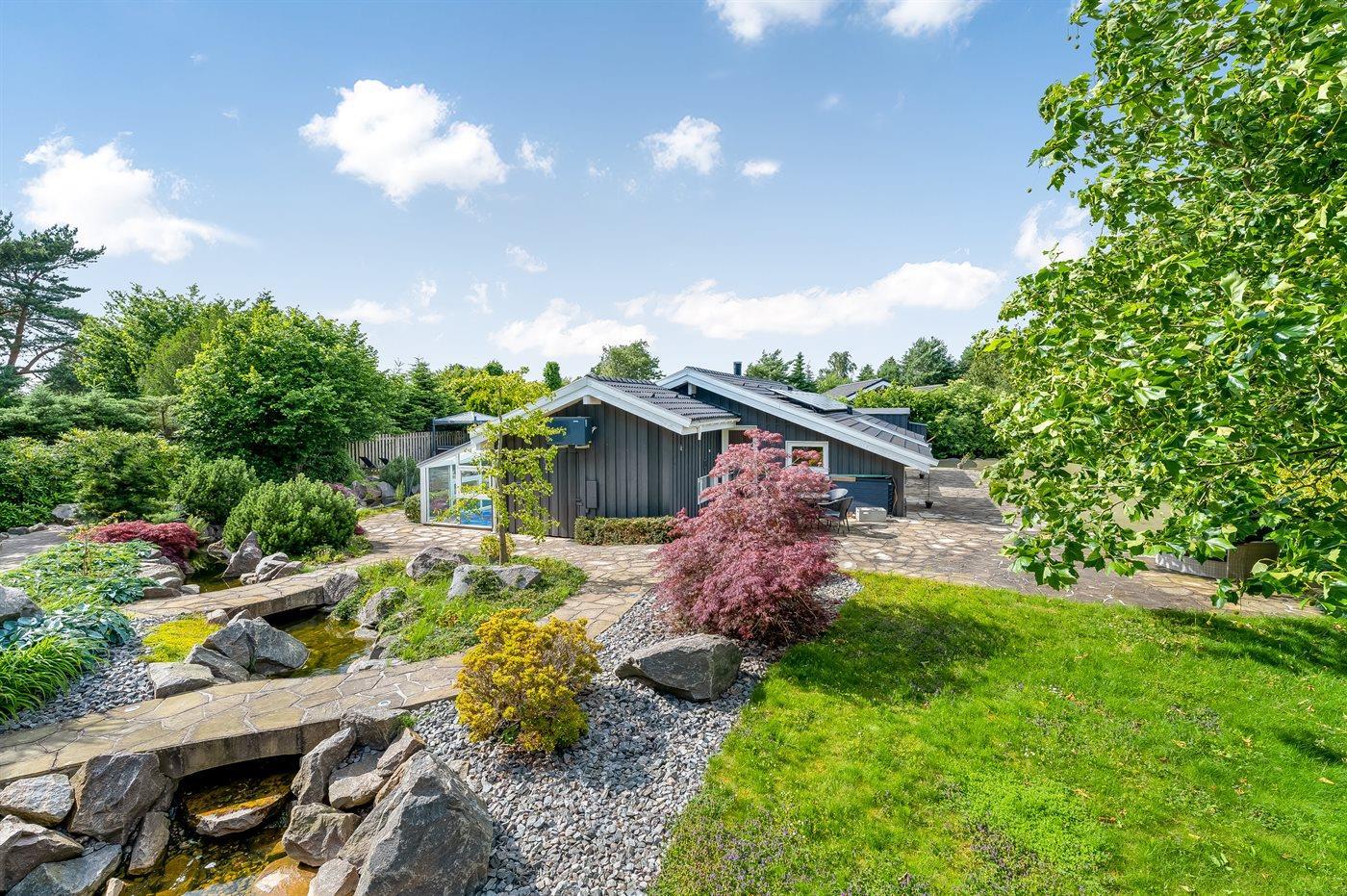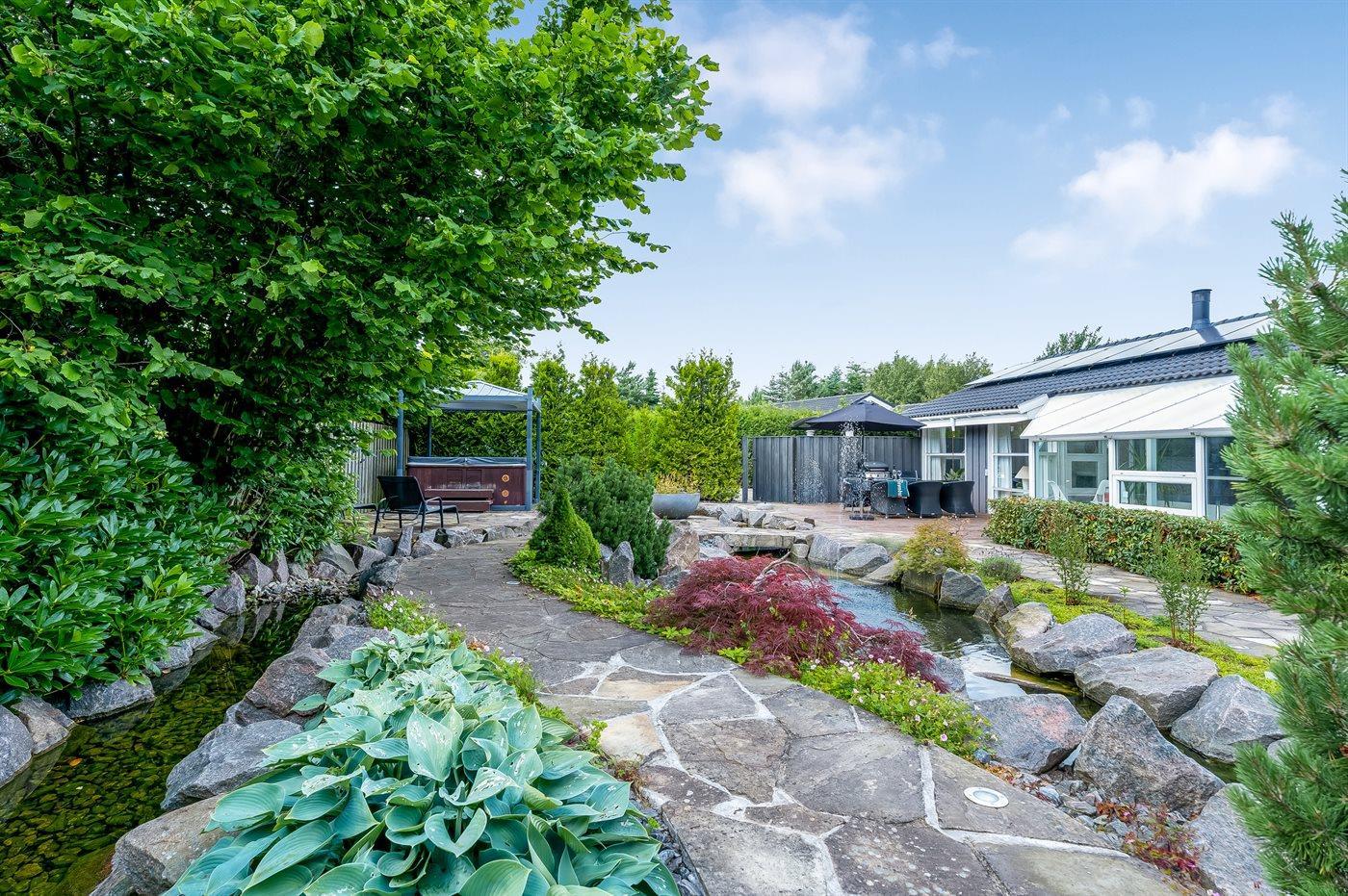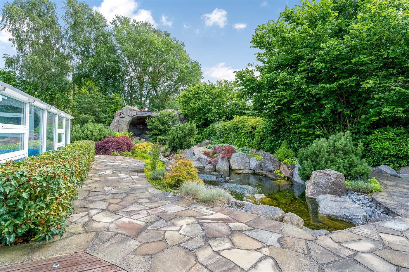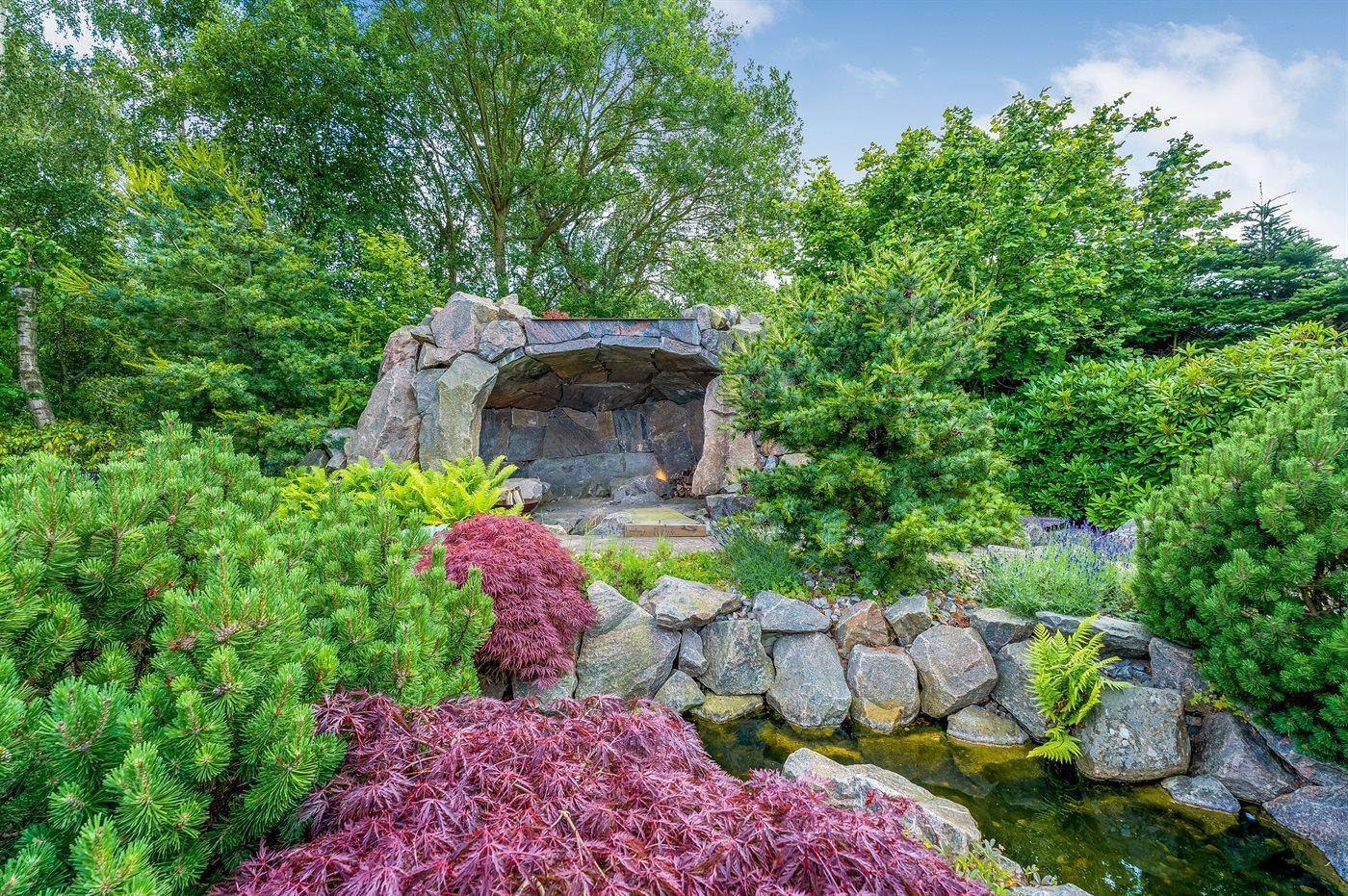Das Haus besticht mit seinem, von Italien inspiriertem Garten aus Granit. Dort findest du einen Bachlauf mit Springbrunnen, ein Putting Green, mehrere schöne Sonnenplätze – und nicht zu vergessen die große Grotte, die an heißen Sommertagen angenehm kühl ist und im Winter mit einer Feuerschale beheizt werden kann.