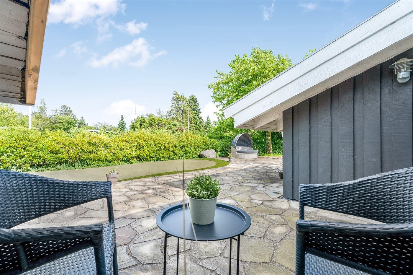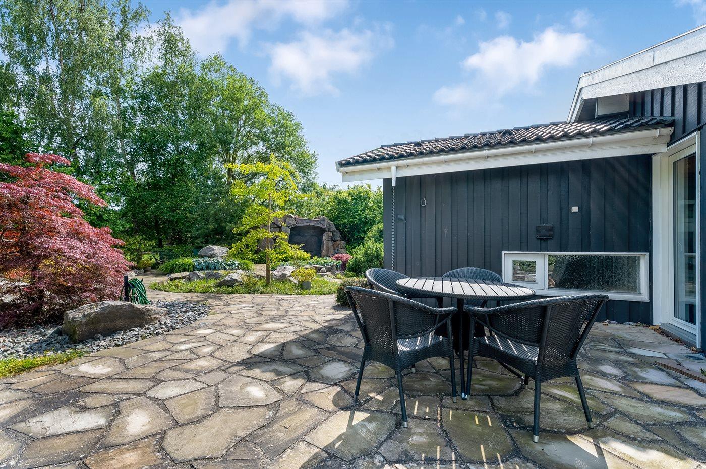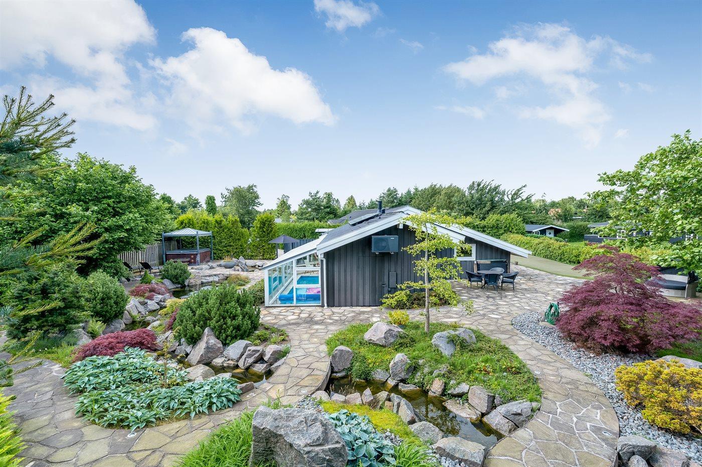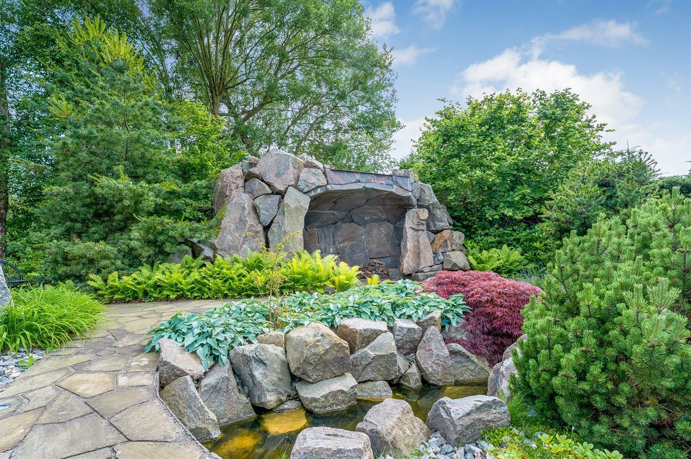 Das Haus besticht mit seinem, von Italien inspiriertem Garten aus Granit. Dort findest du einen Bachlauf mit Springbrunnen, ein Putting Green, mehrere schöne Sonnenplätze – und nicht zu vergessen die große Grotte, die an heißen Sommertagen angenehm kühl ist und im Winter mit einer Feuerschale beheizt werden kann.