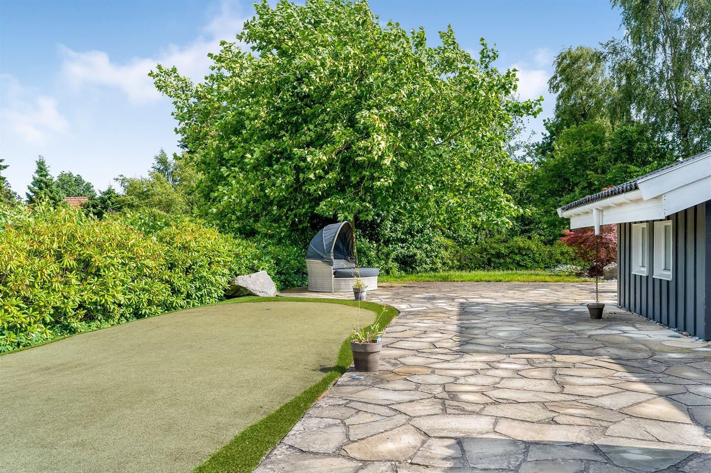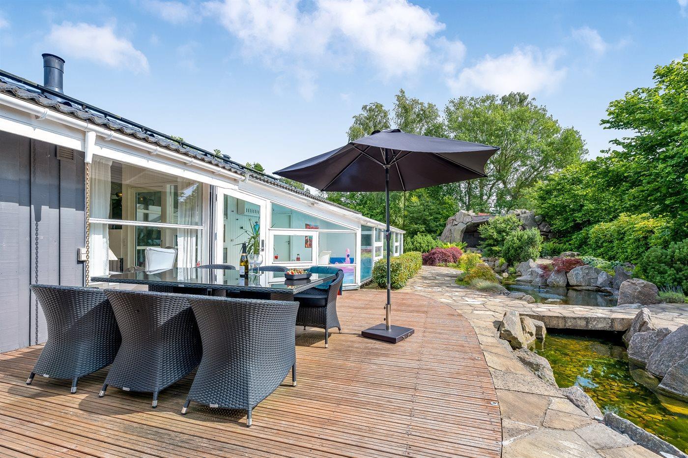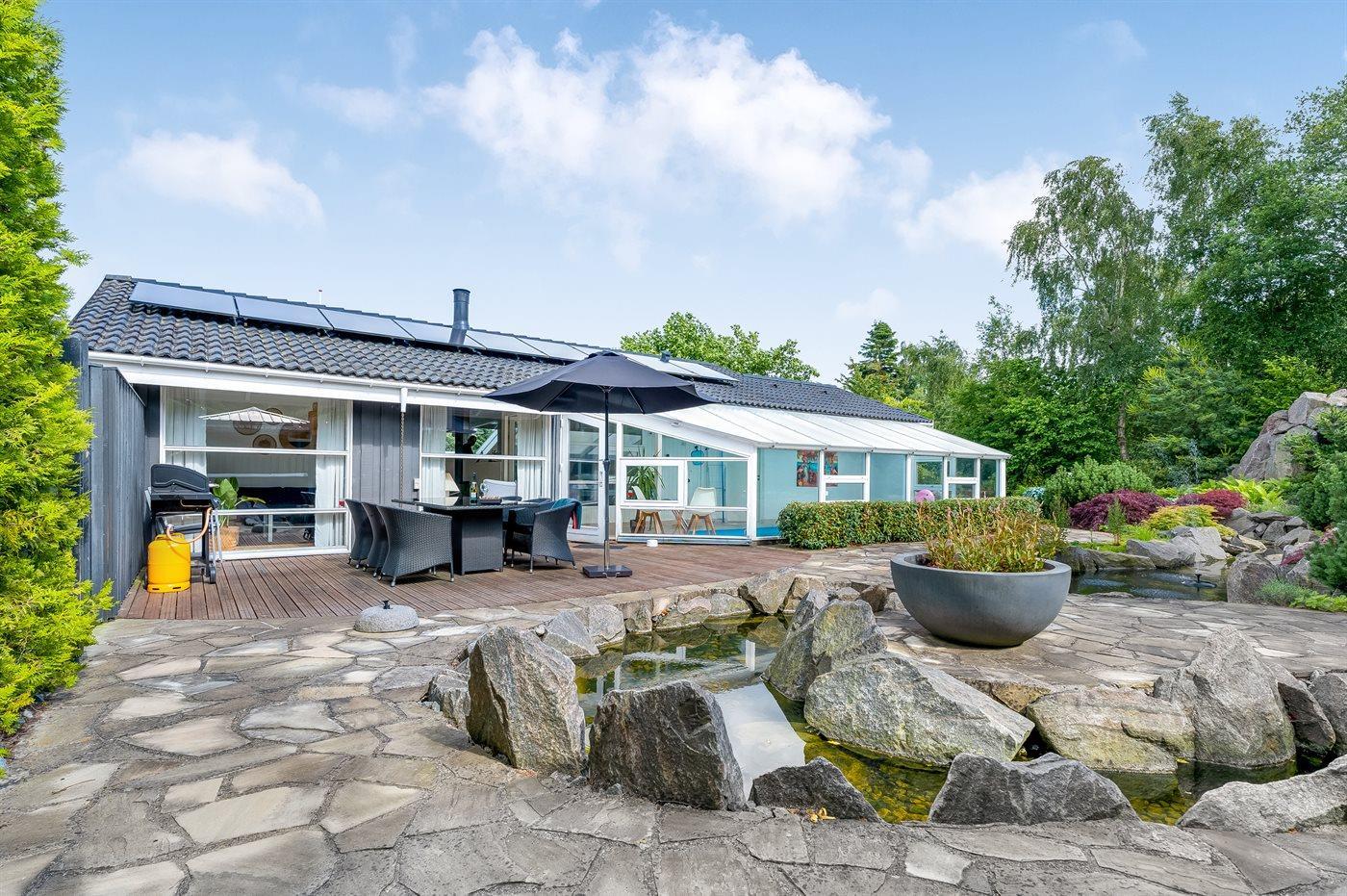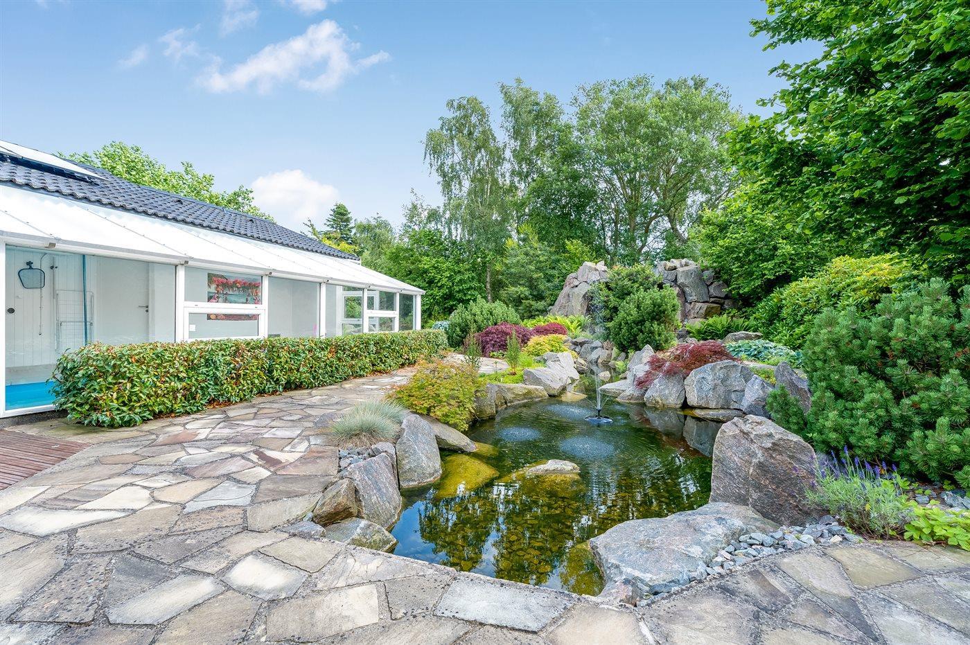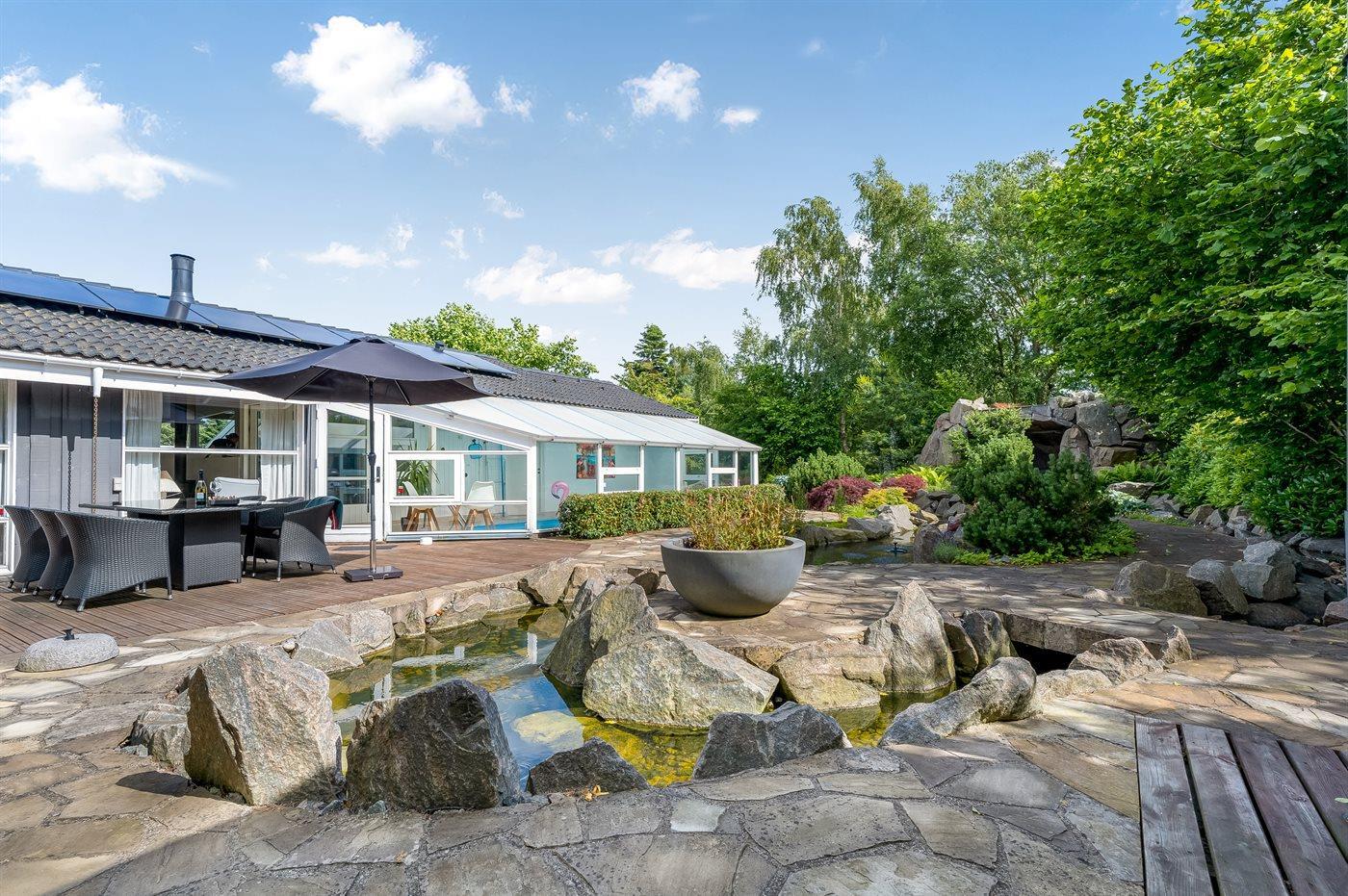 Das Haus besticht mit seinem, von Italien inspiriertem Garten aus Granit. Dort findest du einen Bachlauf mit Springbrunnen, ein Putting Green, mehrere schöne Sonnenplätze – und nicht zu vergessen die große Grotte, die an heißen Sommertagen angenehm kühl ist und im Winter mit einer Feuerschale beheizt werden kann.
