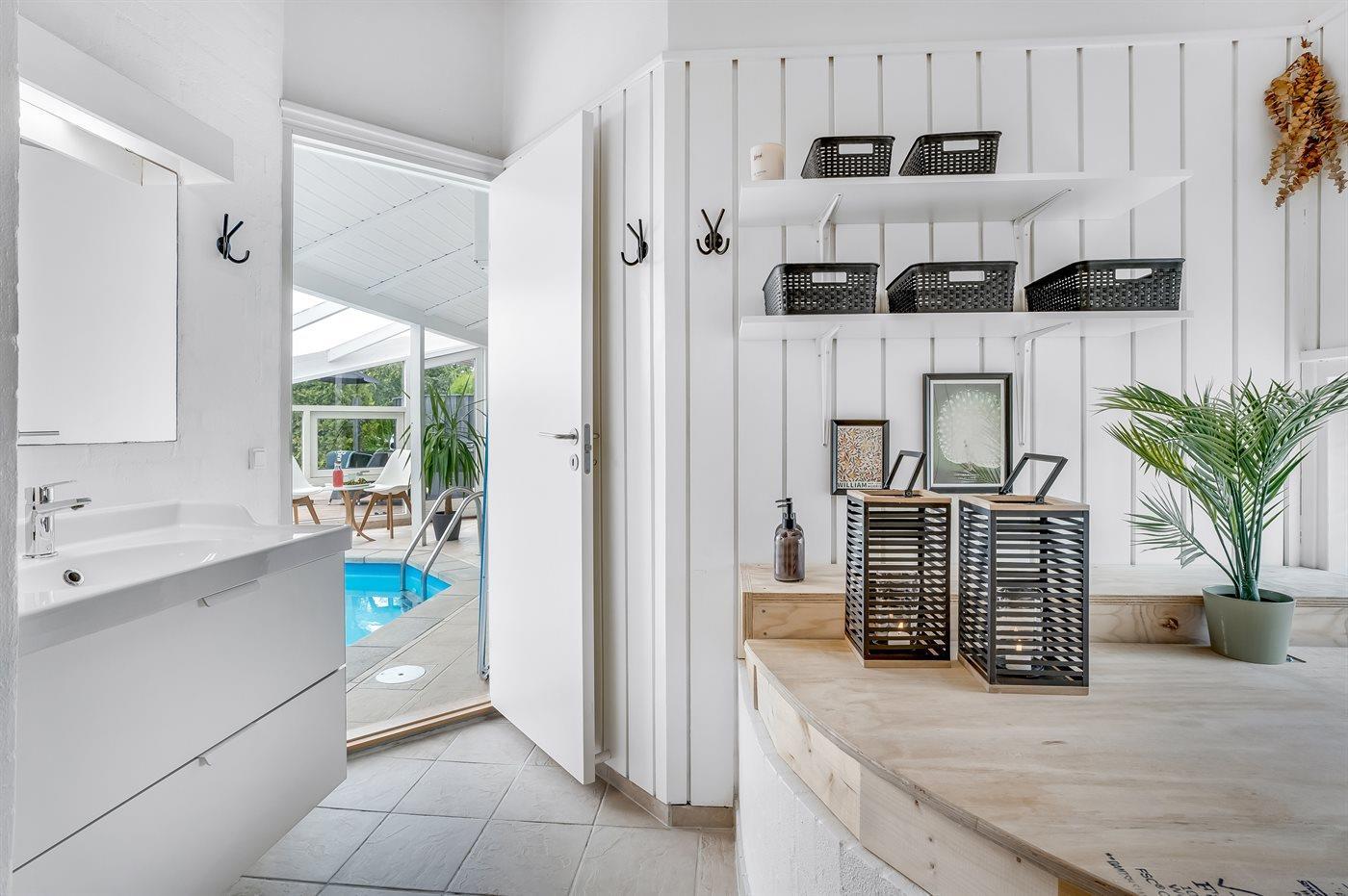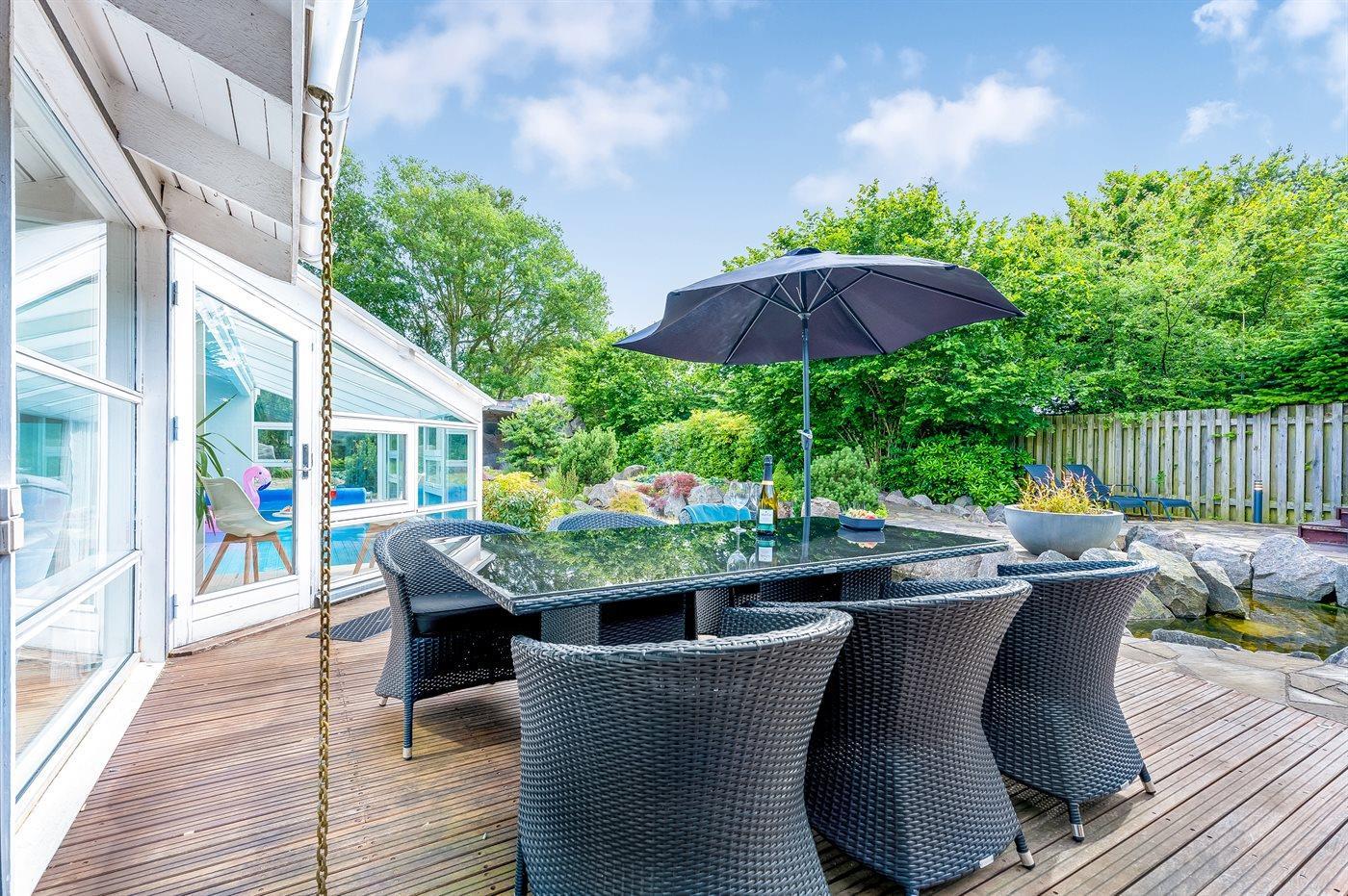 Modernes Ferienhaus in Marielyst mit Innenpool, Sauna und großem Garten nur 400 m vom Marktplatz entfernt.