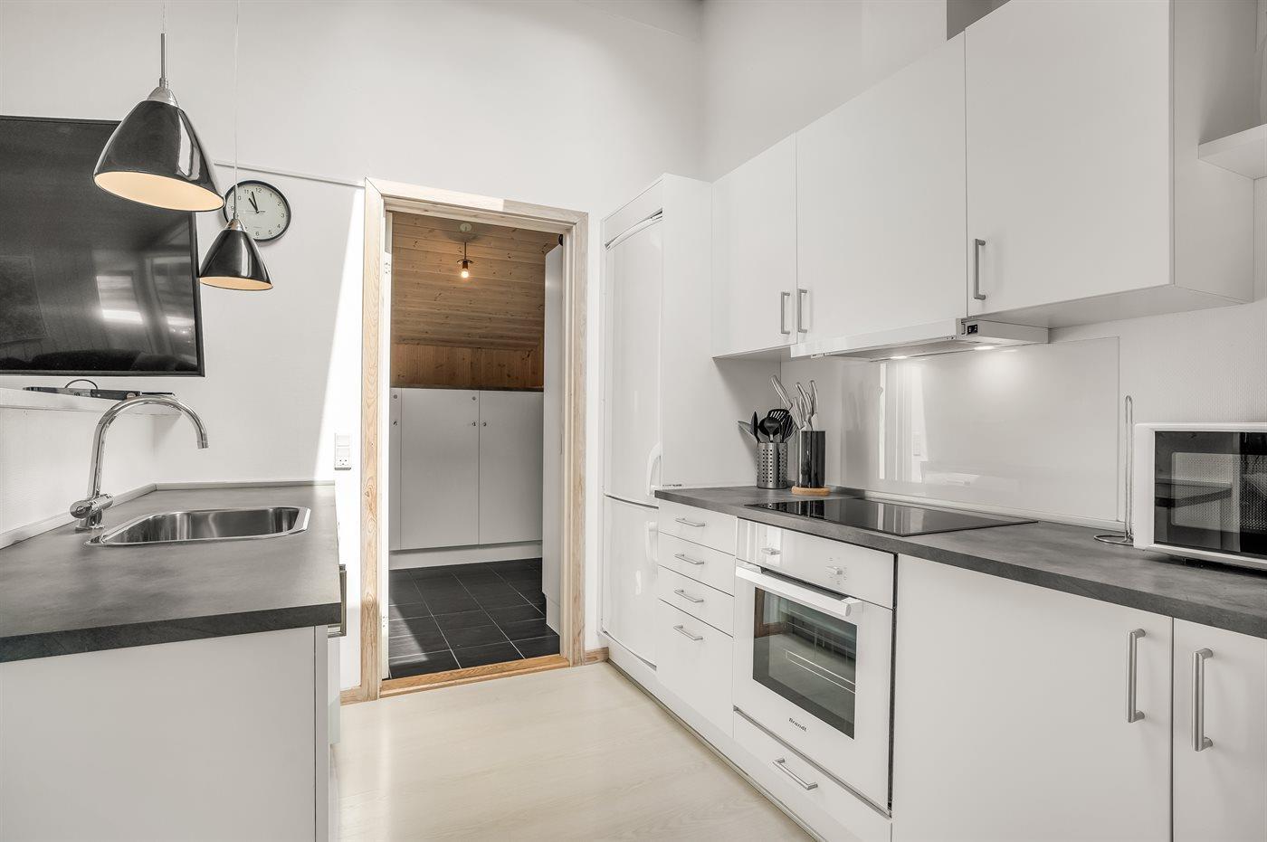 Die Küche ist mit Kühlschrank ausgestattet. Außerdem gibt es 4 Induktions-Kochzonen, Umluftofen, Mikrowelle sowie Geschirrspüler.