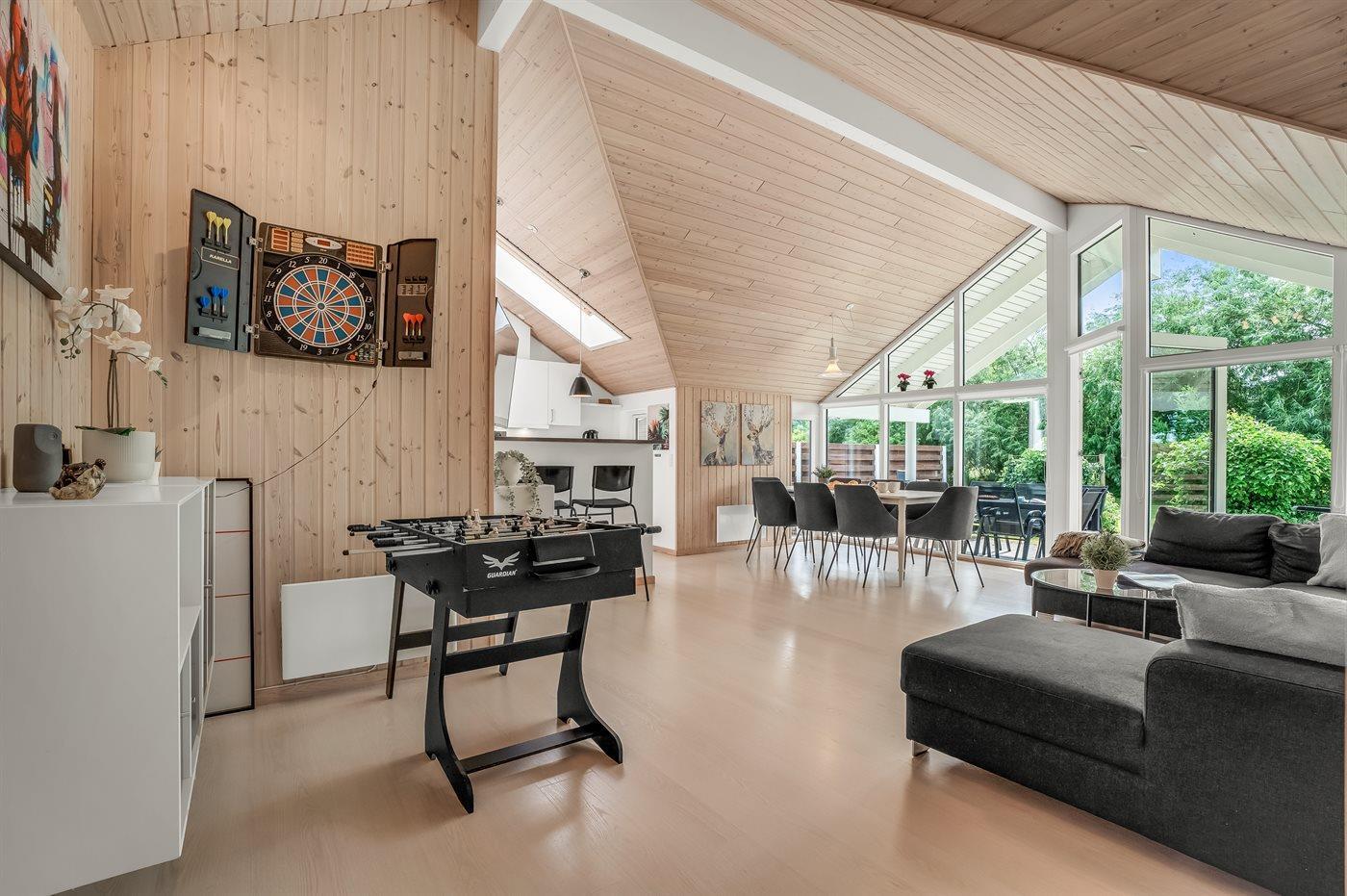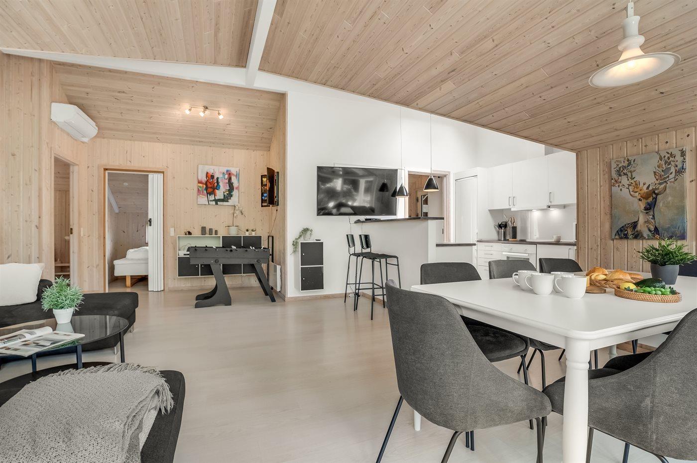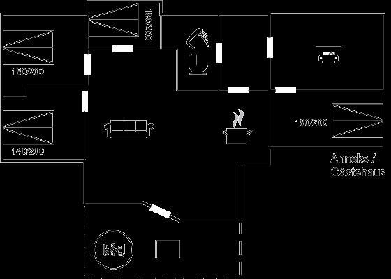 Das Ferienhaus verfügt über eine helle Wohnküche, die in das modern eingerichtete und gemütliche Wohnzimmer übergeht.Es gibt drei Schlafzimmer im Haus – alle mit Doppelbetten. Im großen und gemütlichen Gästehaus, den ihr über die Garage erreicht, befindet sich ebenfalls ein Doppelbett.