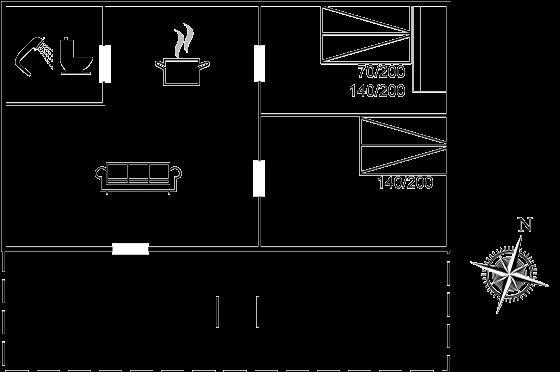 Die Schlafplätze verteilen sich auf 2 Schlafräume. 4 Schlafplätze in Doppelbetten.1 Schlafplatz in einem Etagenbett.