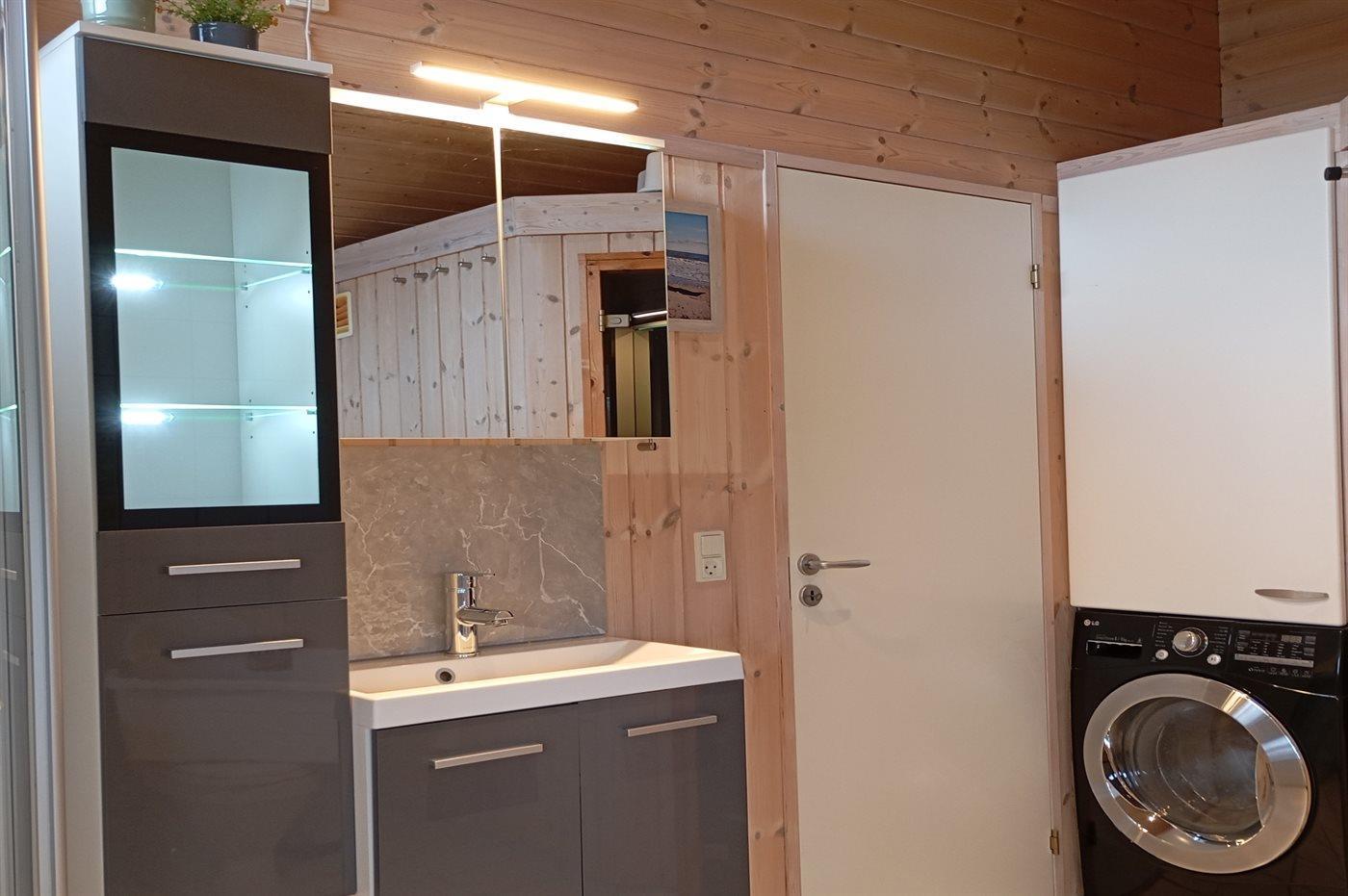 Besonders schönes Ferienhaus aus Holz von 2005 mit Whirlpool und Sauna. Das helle und einladende Haus ist auf einem Naturgrundstück dicht an einem der kinderfreundlichsten Sandbadestrände Dänemarks aufgeführt. Zum Haus gehört eine teilweise überdachte Terrasse mit Gartenmöbeln. Innen gibt es schöne Holzböden sowie hell gebeizte Holzwände und -decken. Das herrliche Badezimmer hat beheizbaren Klinkerboden, 2-Pers. Whirlpool, Duschnische und Zutritt zur Sauna. Gästetoilette. Die schöne und gut ausgestattete Küche enthält u. a. Geschirrspüler, Mikrowelle, große Tiefkühltruhe und großen Kühlschrank, und Herd mit Warmluftofen und Ceran-Feld. Die Küchenabteilung ist mit dem hellen und nett möblierten Wohnzimmer mit großen Fenstern kombiniert. Hier finden Sie Kaminofen, Stereoanlage mit CD-Spieler, DVD-Spieler und TV. Die Schlafplätze des Hauses verteilen sich auf 2 Zimmer mit Doppelbett und 1 Zimmer mit 2 Einzelbetten. Darüber hinaus gibt es Alkoven mit 2 Schlafplätzen im Wohnzimmer sowie offenes Obergeschoss mit 2 Schlafplätzen für Kinder. Zur Ausstattung des Hauses gehören auch energiegerechte Wärmepumpe, Waschmaschine und Wäschetrockner sowie kostenlose, kabellose Internetverbindung. Draußen gibt es Sandkiste und Schaukel für die kleinsten Feriengäste. Ein helles und freundliches Ferienhaus dicht an Einkaufsmöglichkeiten, guten Restaurants, Sehenswürdigkeiten, Golf, Bowling, Zoo u.a.m.
