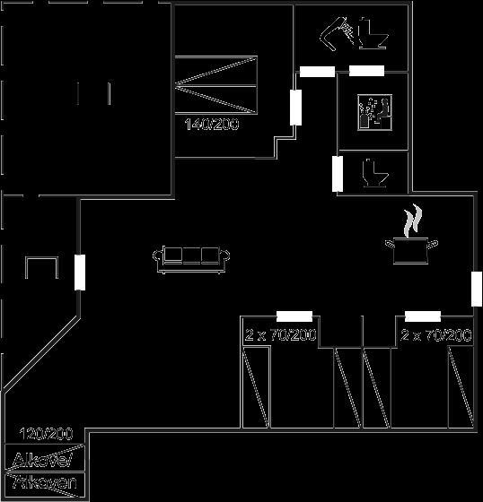 Die Schlafplätze verteilen sich auf 3 Schlafräume. 2 Schlafplätze in einem Doppelbett. 4 Schlafplätze in Einzelbetten.2 Schlafplätze im Alkoven. 2 von diesen Schlafplätzen befinden sich im Wohnzimmer. Ferner steht ein Kinderbett zur Verfügung.