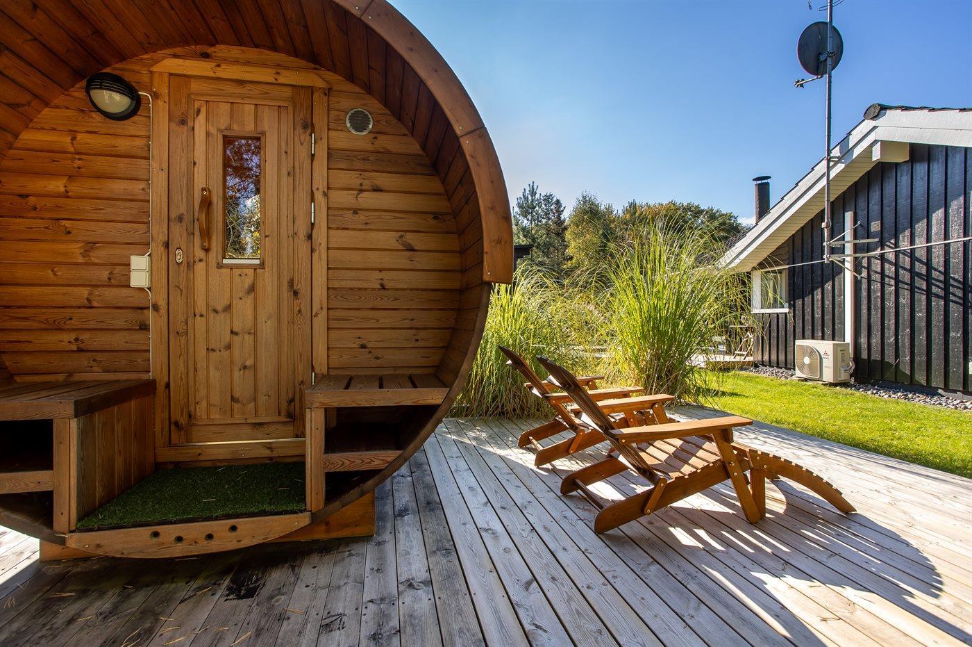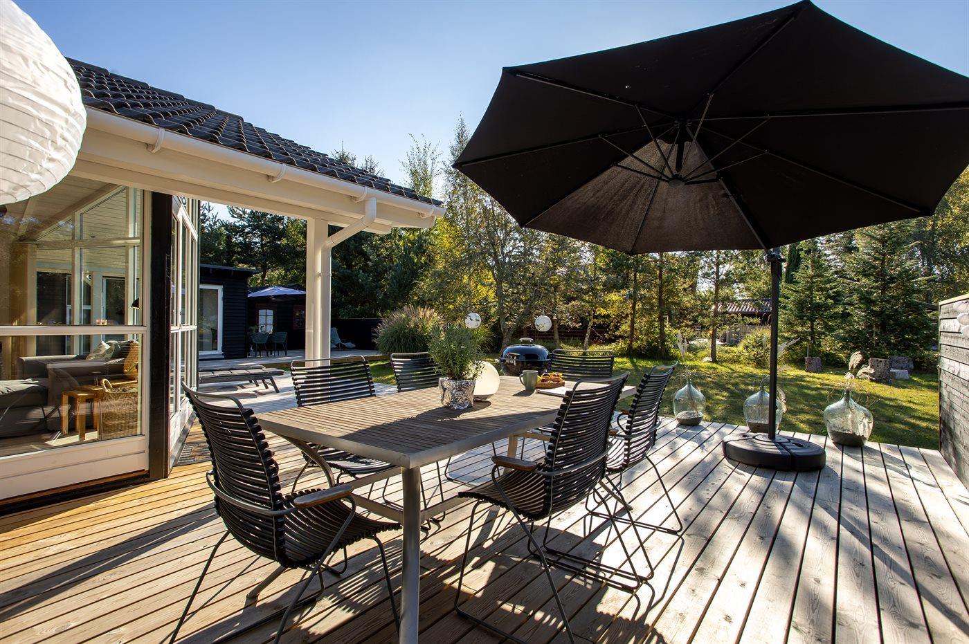 Auf der großen, schönen Terrasse könnt ihr das Leben im Freien in vollen Zügen genießen – entspannt euch in den Sonnenliegen, bereitet leckere Mahlzeiten auf dem Grill zu und genießt einfach die gemeinsame Zeit. Das Haus liegt in der Nähe des schönen Naturwaldes von Bøtø und des angrenzenden Vogelschutzgebiets – eine herrliche Lage, die Ruhe, Erholung und viel Natur vereint.