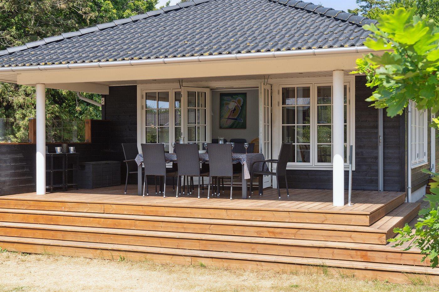 Ein modernes Ferienhaus in Væggerløse mit großem Garten, nah am kinderfreundlichen Strand und vielseitiger Ausstattung für Familien.