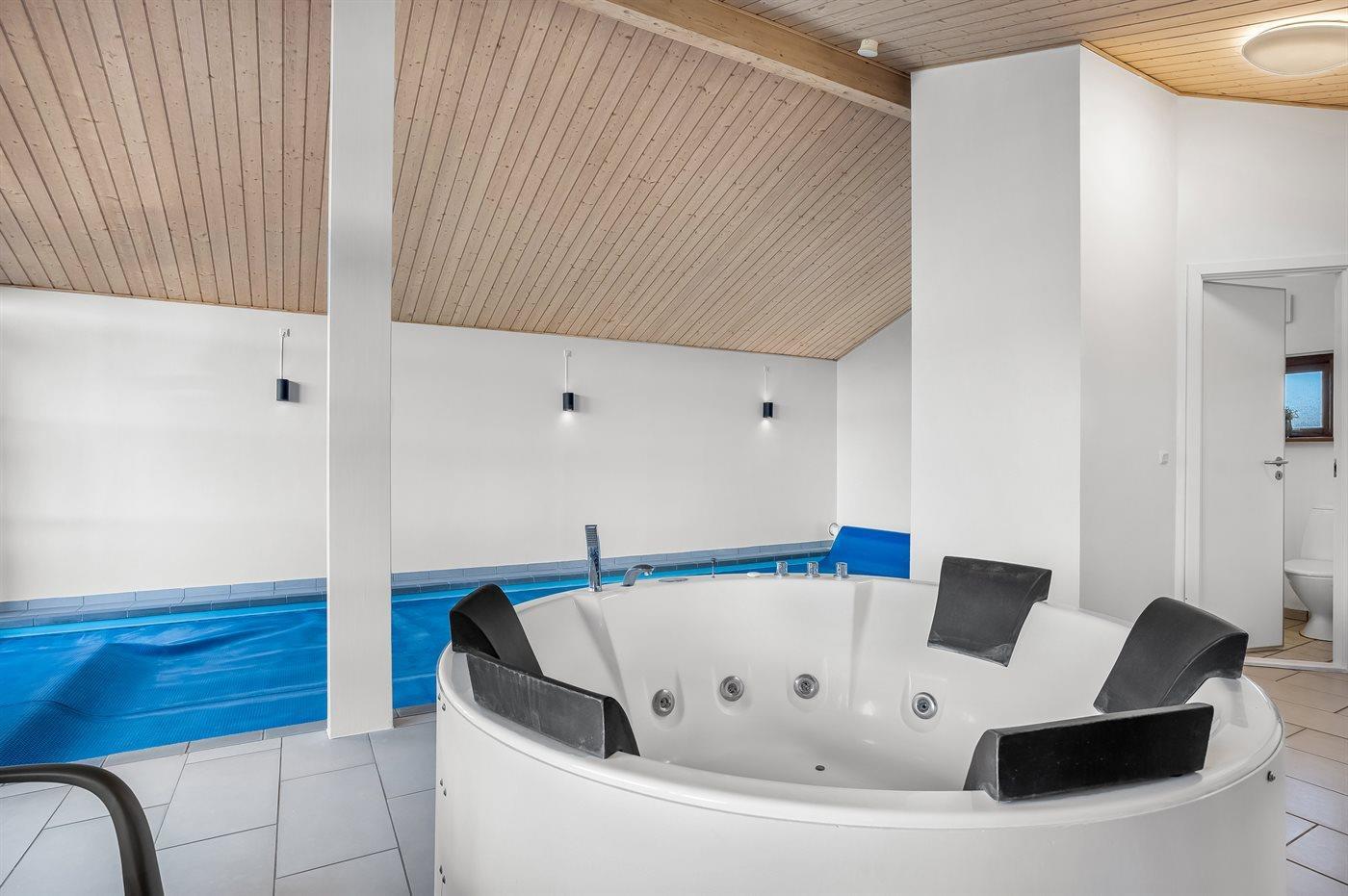 Ein schönes und familienfreundliches Ferienhaus mit Innenpool und Whirlpool sowie einem Angebot aus verschiedenen Indoor-Aktivitäten. Das Ferienhaus bietet mit einem Fußballtor und einem Minigolfplatz außerdem gute Möglichkeiten für Outdoor-Aktivitäten. Das Ferienhaus ist ein Niedrigenergiehaus, was den Verbrauch senkt. Übrigens: 4 der Schlafplätze befinden sich im offenen Obergeschoss des Hauses.