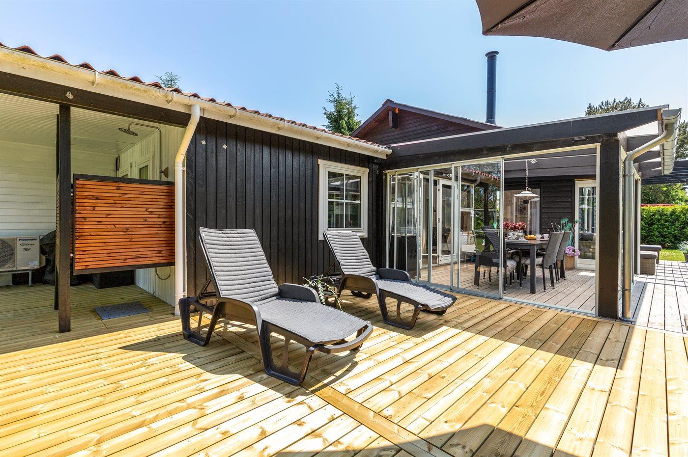 Die Ferienunterkunft liegt auf einem 1200 m² großen Naturgrundstück. Die Entfernung zum Meer beträgt 700 m. Die nächste Einkaufsmöglichkeit liegt 800 m entfernt. Es steht ein offenes Terrassenareal zur Verfügung. Geräteraum. Schaukel. Rutsche. Außensauna, die mit Brennholz beheizt wird. Es steht ein Grill zur Verfügung. Parkplatz auf dem Grundstück.