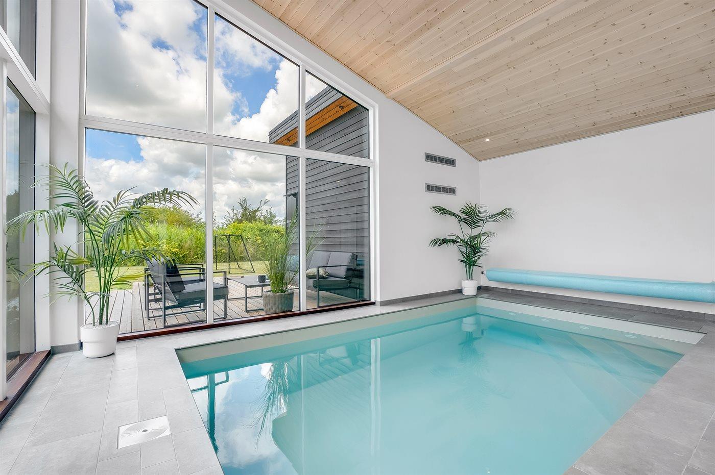Modernes Ferienhaus 2025 in Marielyst mit Innenpool, Sauna, Whirlpool und nahe kinderfreundlichem Strand.
