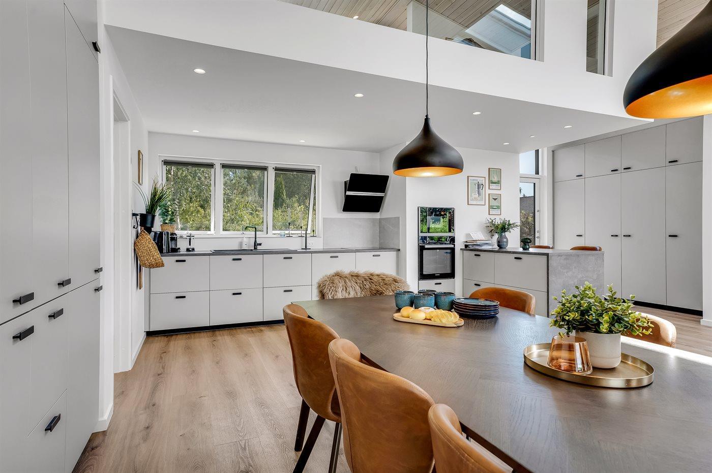 Der Mittelpunkt des Hauses ist die helle, moderne Wohnküche mit Panoramafenster zur herrlichen Terrasse sowie der einladende Innen-swimmingpool mit eingebauter Treppe und mehrfarbiger LED-Beleuchtung – ideal für Spiel, Spaß und gemeinsame Zeit mit der ganzen Familie.