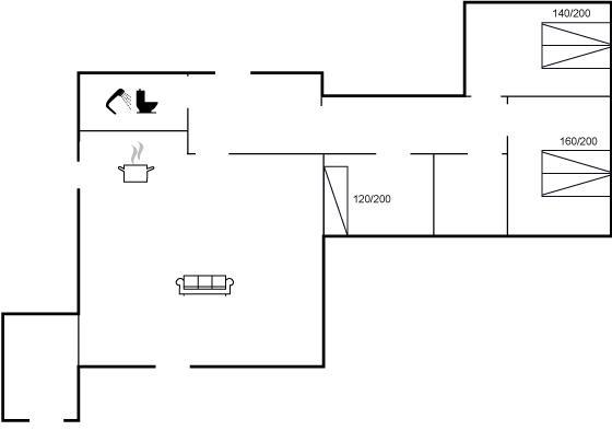 Die Schlafplätze verteilen sich auf 3 Schlafräume. 2 Schlafplätze in einem Doppelbett. 3 Schlafplätze in Einzelbetten.