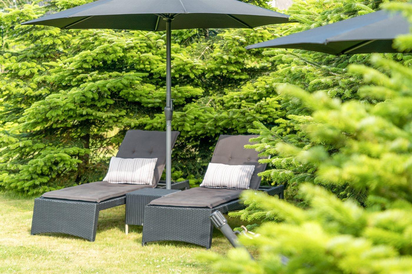 Modernes, renoviertes Holzferienhaus mit zwei Terrassen nahe dem Meer in ruhiger Lage.