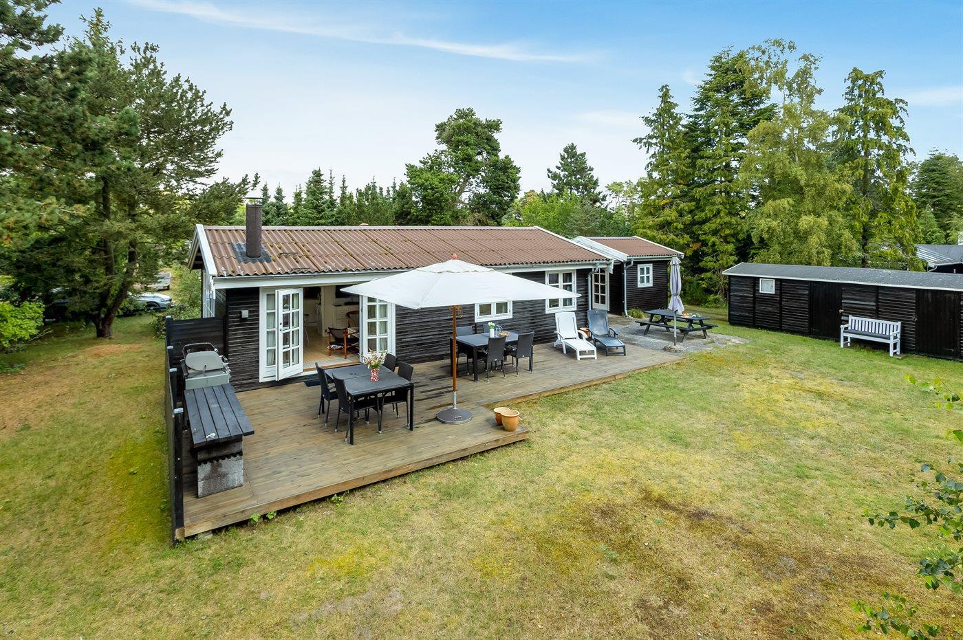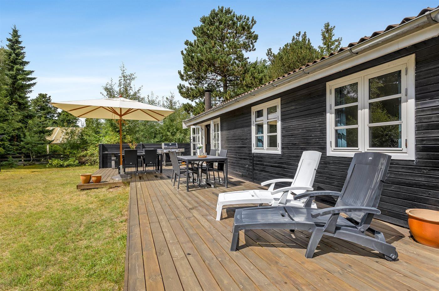 Gemütliches Ferienhaus aus Holz, laufend modernisiert, in ruhiger Umgebung gelegen– dicht an einem schönem Sandbadestrand. Zum Haus gehört Terrasse mit Gartenmöbeln.