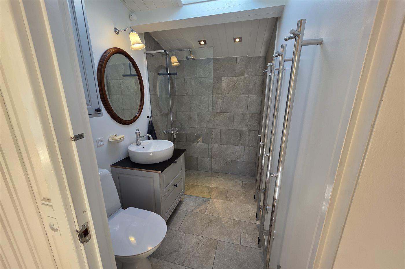 Es gibt 1 Badezimmer mit Duschnische und 1 Toilette.