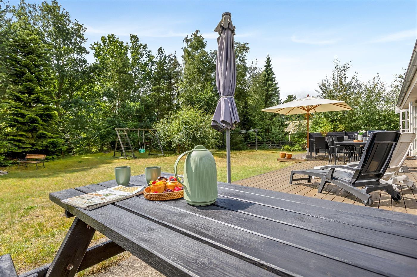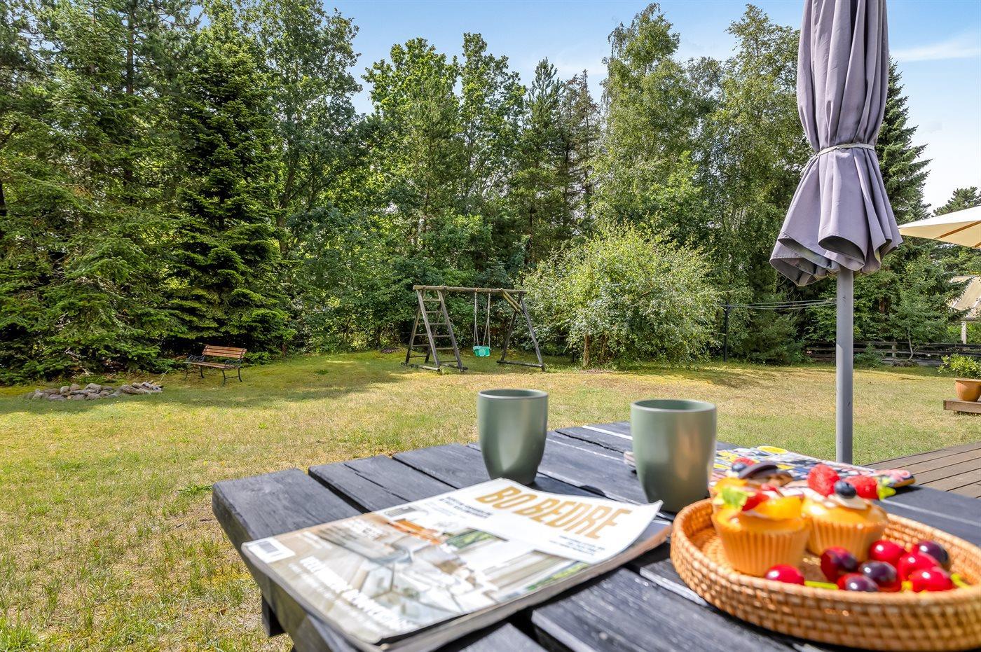 Die Ferienunterkunft liegt auf einem 1080 m² großen Naturgrundstück. Die Entfernung zum Meer beträgt 200 m. Die nächste Einkaufsmöglichkeit liegt 450 m entfernt. Es steht ein 55 m² Terrassenareal zur Verfügung. Außerdem gibt es 10 m² überdachte Terrasse. Schaukel. Es steht ein Gasgrill zur Verfügung. Parkplatz auf dem Grundstück.