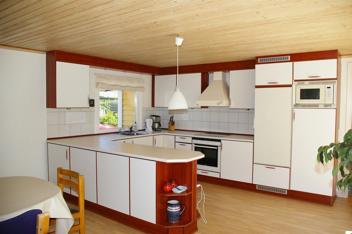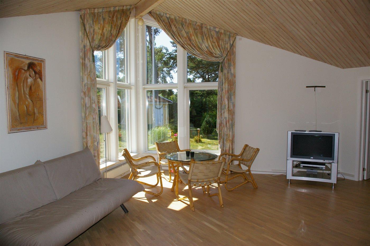 Ein großes Ferienhaus, nur 150 m von schönem Sandstrand entfernt. Das Haus liegt in einer Sackgasse, die direkt zum Strand führt. Großes, ungestörtes und kupiertes Grundstück. Das Haus ist laufend renoviert worden und präsentiert sich hell und freundlich, mit einer offener Küche und Panoramafenstern zum Garten hin. Vom Wohnzimmer gelangen Sie auf die große Terrasse.