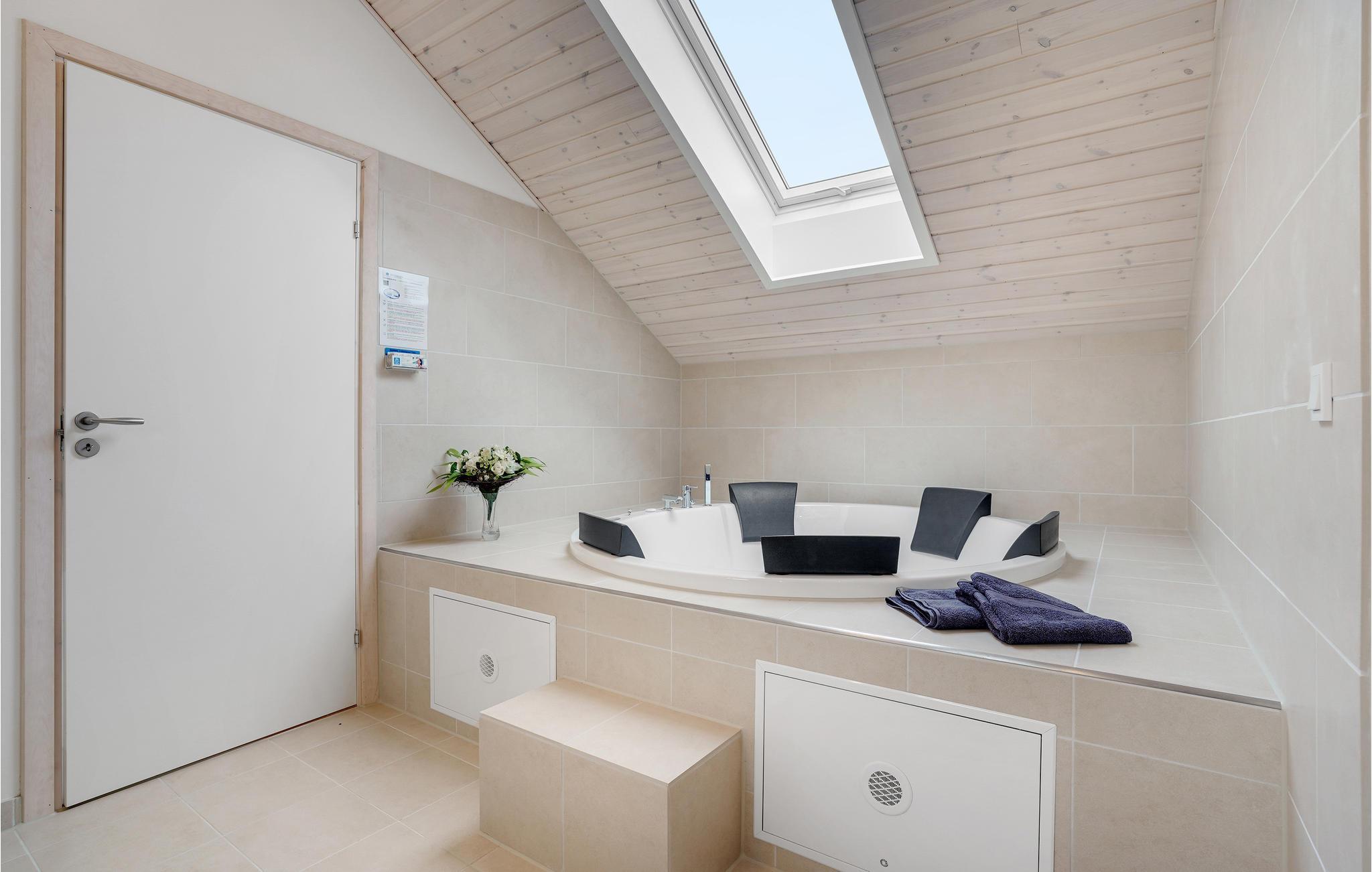 Willkommen in diesem geräumigen Ferienhaus, das Platz für eine Großfamilie oder mehrere befreundete Familien bietet. Betreten Sie das schöne Haus und fühlen Sie sich direkt wohl. Das Haus wird aufgrund der großen Fensterfronten von natürlichem Licht durchflutet und lädt Sie ein in den Gemeinschaftsräumen die Zeit gemeinsam zu verbringen. Im klassischen Wohnraum mit Essbereich und Küche können Sie spielen und sich entspannen, während im Aktivitätsraum der Spaß und der Wettbewerb im Fokus stehen. Auch eine Entspannungsoase steht für Sie bereit mit einem Whirlpool für mehrere Personen und eine Sauna.