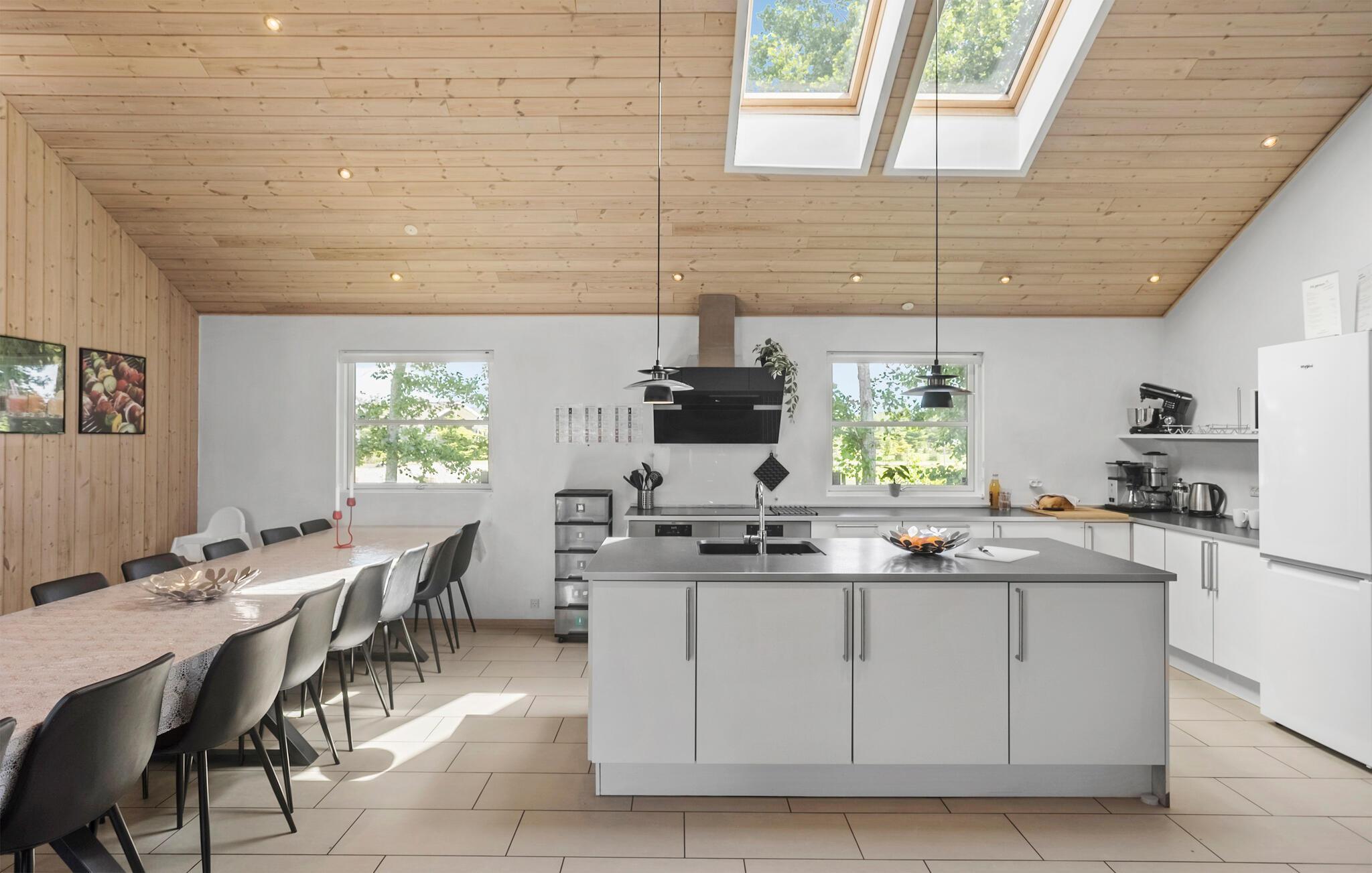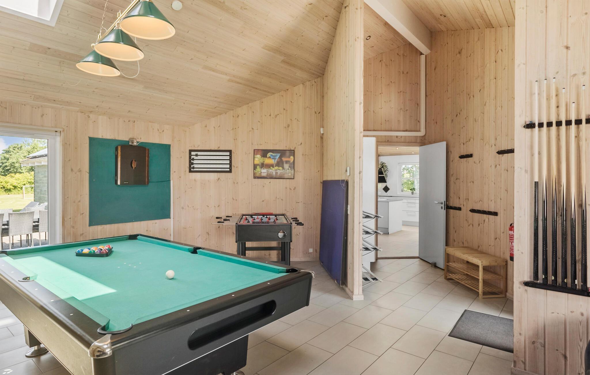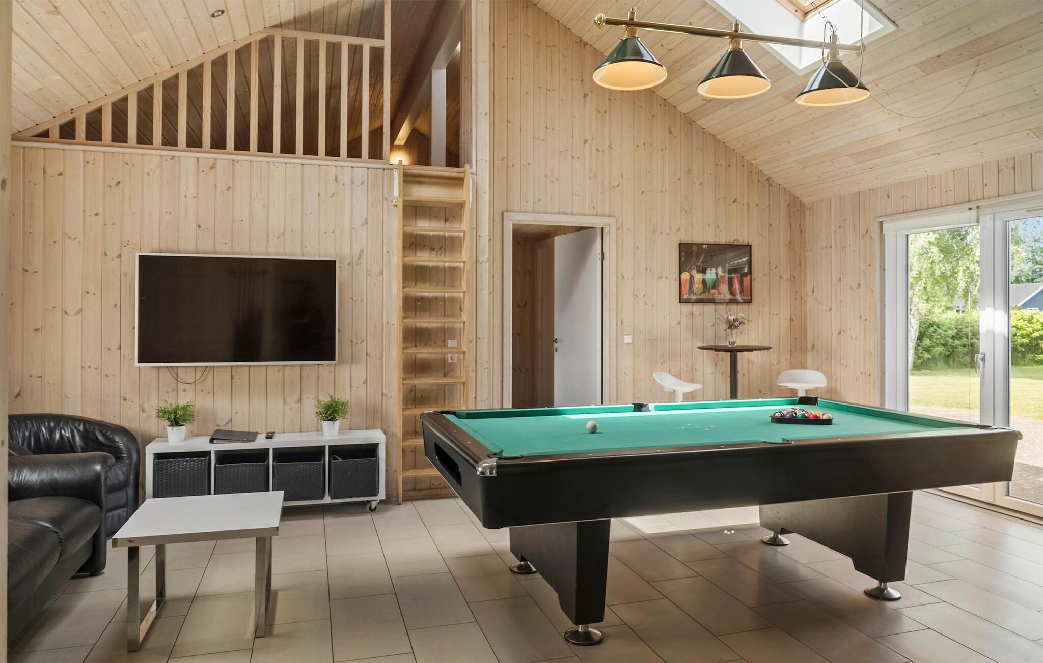 Dieses Haus empfängt Sie mit warmem Holz, stilvollem Design und einer entspannten Atmosphäre. Durch die Dachfenster strömt viel Tageslicht in den Raum und lässt die offene Küche hell und freundlich wirken. Genießen Sie entspannte Stunden vorm Fernseher oder kochen Sie gemeinsam mit Ihren Mitreisenden. Wenn Sie es aktiver mögen, springen Sie für ein erfrischendes Bad in den Pool oder spielen Sie eine Partie Billard.