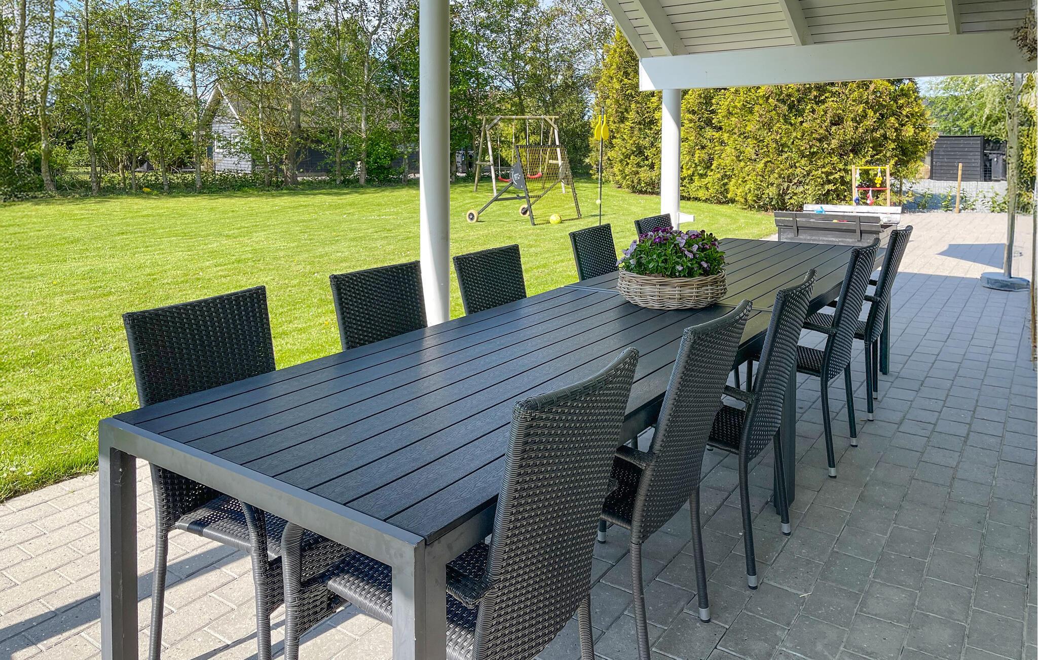 Im Freien finden Sie eine große Terrasse mit genügend Gartenmöbeln für alle, sodass Sie Ihre Urlaubsessen problemlos an der frischen Luft genießen können. Das große Grundstück ist eingezäunt und bietet unter anderem eine Schaukel und einen Sandkasten, die die jüngsten in der Familie lieben werden. Es ist auch ein großartiger Ort für einen Urlaub mit Hund.
