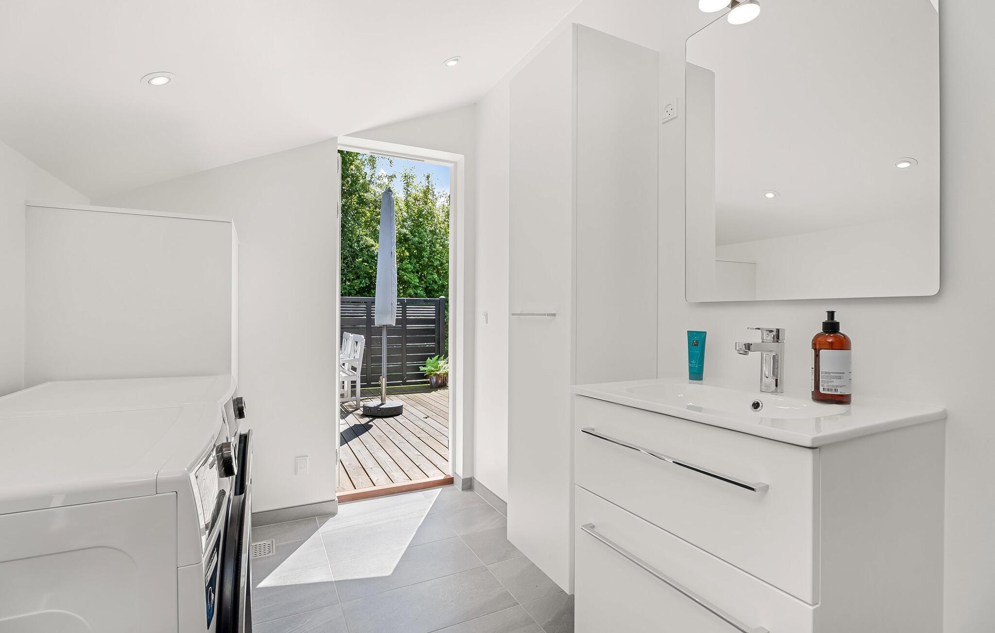 Öffnen Sie die Terrassentür und treten Sie direkt ins Freie. Sonnen Sie sich auf der Holzterrasse, versammeln Sie sich zum Grillen am großen Esstisch oder entspannen Sie mit einem Buch unter dem Sonnenschirm. Der weitläufige Garten ist umgeben von hohen Bäumen und bietet nicht nur Ruhe und Privatsphäre, sondern auch viel Platz zum Spielen und Toben.