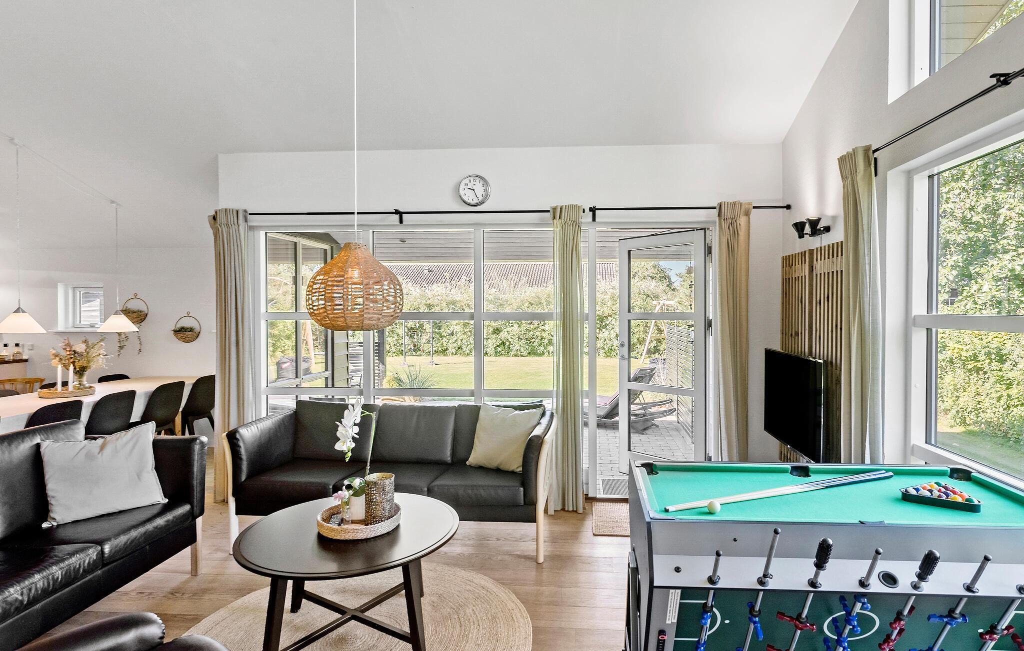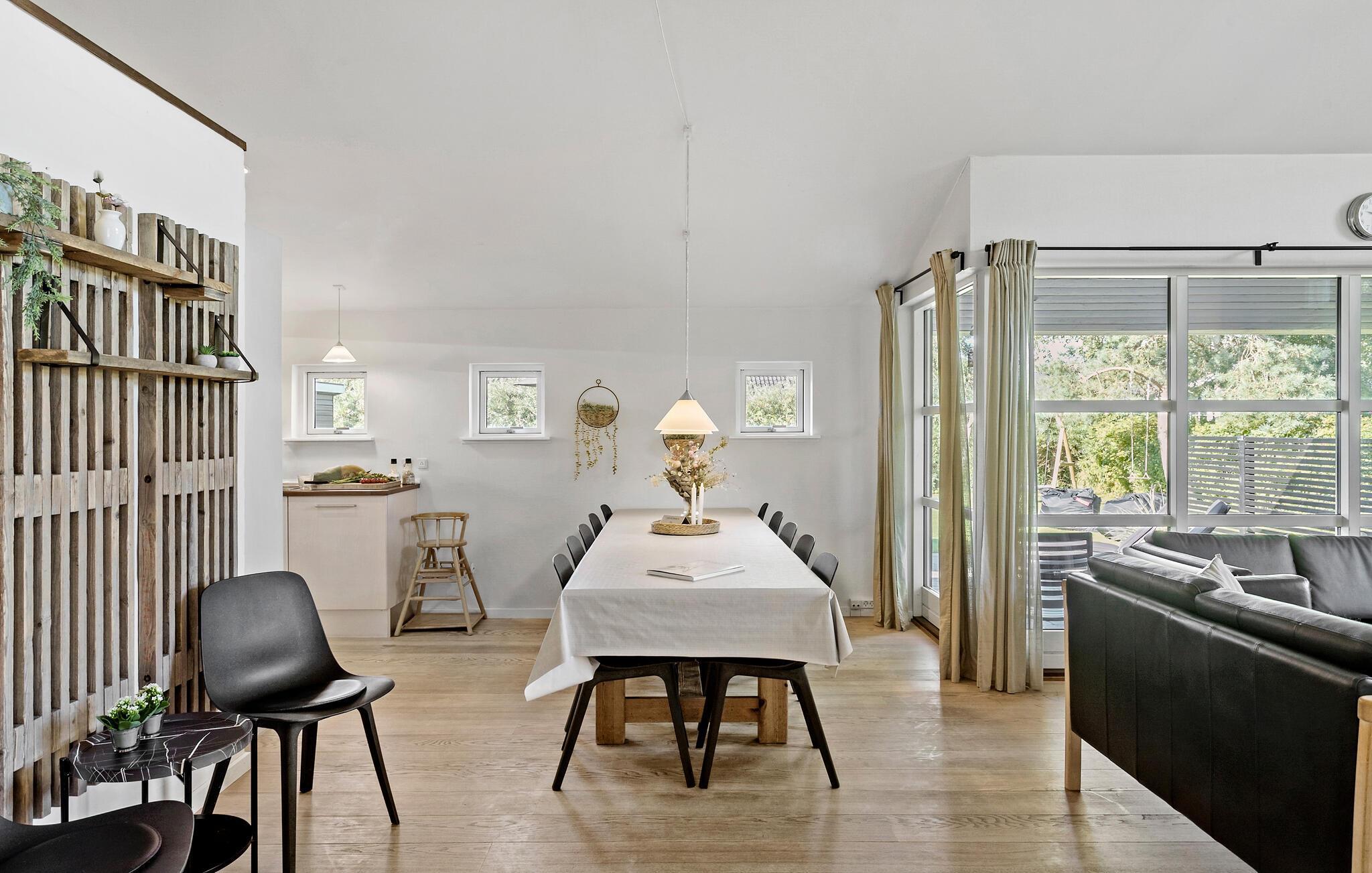 Dieses großzügige Ferienhaus ist ein wahres Juwel, das Ihnen viel Platz für Erholung und gemeinsame Aktivitäten bietet, ideal für größere Reisegruppen oder mehrere Familien. Die Lage ist ebenfalls unschlagbar. Nur ein kurzer Spaziergang trennt Sie vom traumhaften Sandstrand in Marielyst auf der Insel Falster. Hier können Sie die herrliche Natur genießen und das Beste aus Ihrem Urlaub machen. Starten Sie Ihren Tag in der modernen Küche, in der Sie ein leckeres Frühstück für alle vorbereiten können. Der lange Esstisch lädt dazu ein, gemeinsam zu speisen und den Tag zu planen. Spielen Sie anschließend eine Partie Billard oder Tischfußball und lassen Sie die kleinen Urlaubsgäste draußen nach Herzenslust schaukeln.