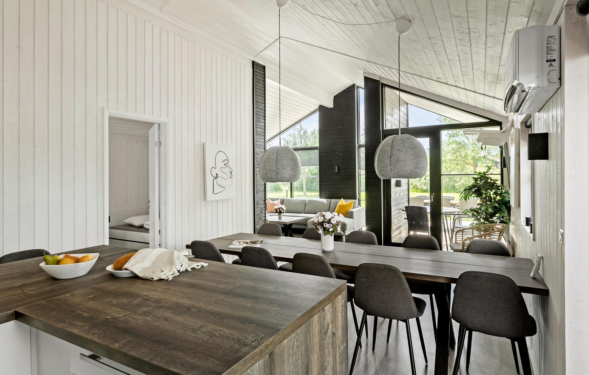 Verbringen Sie wundervolle Urlaubstage in dem großzügigen Haus, das Ihnen alles bietet, was Sie für eine entspannte Auszeit benötigen. Beginnen Sie Ihren Tag mit einem ausgiebigen Frühstück am langen Esstisch neben der offenen Küche, die wie der Rest des Hauses elegant und stilvoll daherkommt, und planen Sie Ihre Abenteuer in der Umgebung. Entspannen Sie sich danach im Außenwhirlpool, während die Kinder sich auf der Schaukel oder dem Trampolin im Garten austoben. Nutzen Sie das Fußballtor für ein spannendes Spiel mit der ganzen Familie oder messen Sie sich bei einer Partie Airhockey im Haus. Im Innenbereich erwartet Sie ein weiterer Whirlpool.