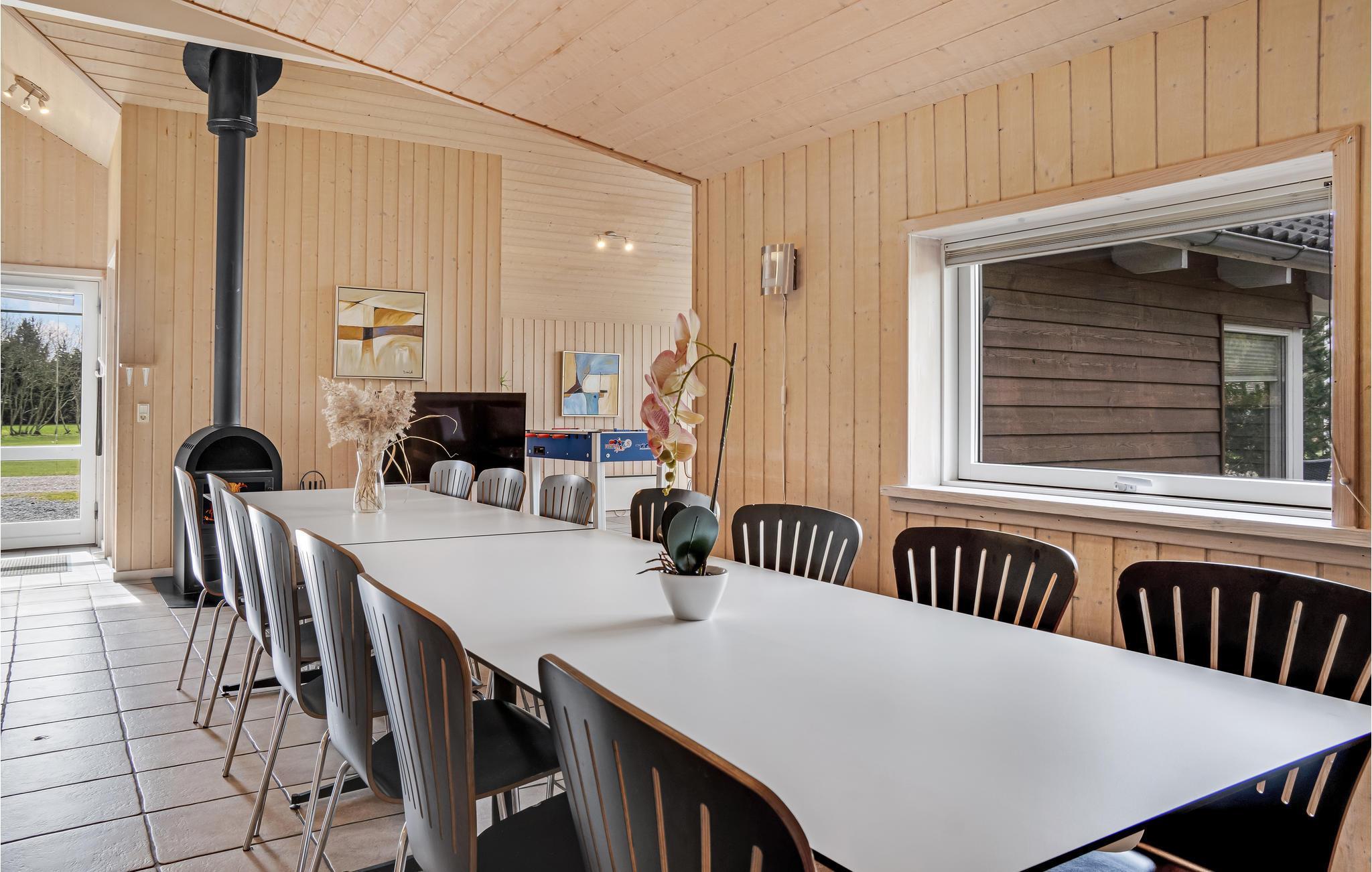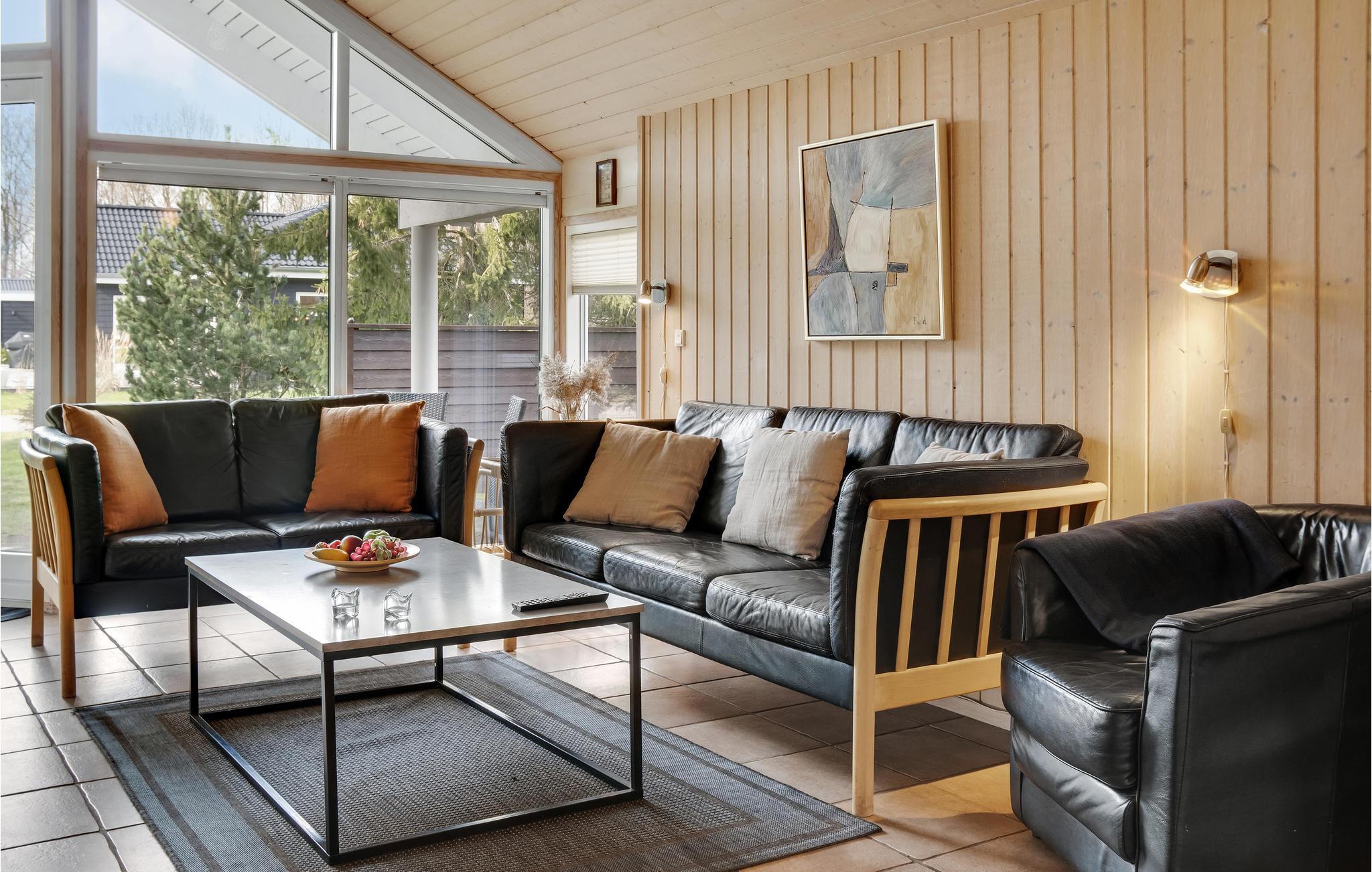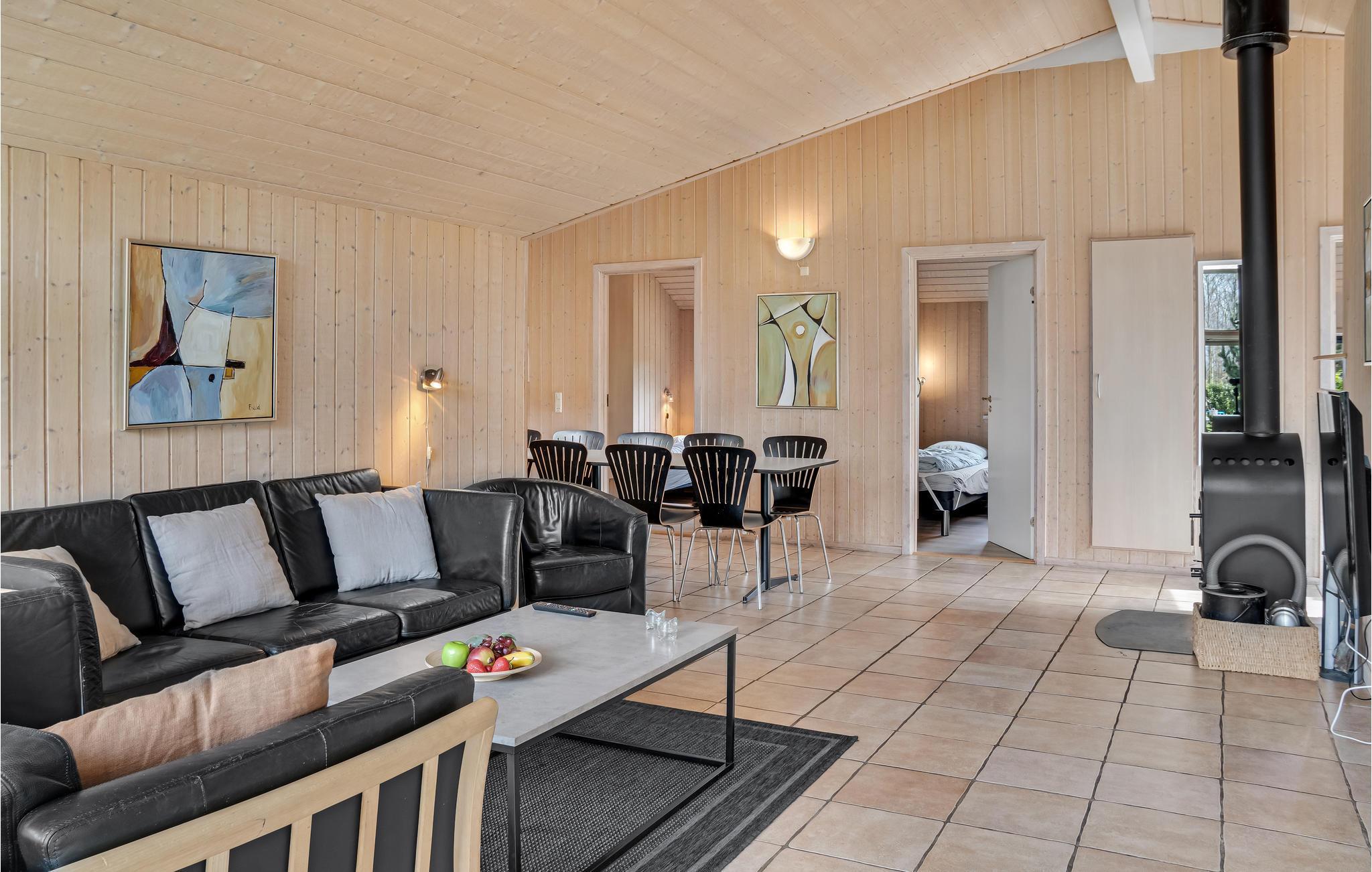 Dieses attraktive Ferienhaus ist mit viel Liebe zum Detail eingerichtet. Der Eigentümer hat dafür gesorgt, dass alles in bester Qualität ausgeführt wurde. Zusätzlich zu den fünf Schlafräumen mit komfortablen Betten sind auf dem Schlafboden vier Schlafplätze vorhanden. Hier werden sich die Kinder sicher viel aufhalten. Auf dem Naturgrundstück, das von Bäumen umgeben ist, können Sie Ball spielen, für Ihren Vierbeiner ist ein mobiler Hundezaun vorhanden. Zu den erholsamen Einrichtungen gehören der Whirlpool für 2-3 Personen und die Sauna. Im großen, hell eingerichteten Wohnraum sorgt der Kaminofen für ein gemütliches Ambiente.