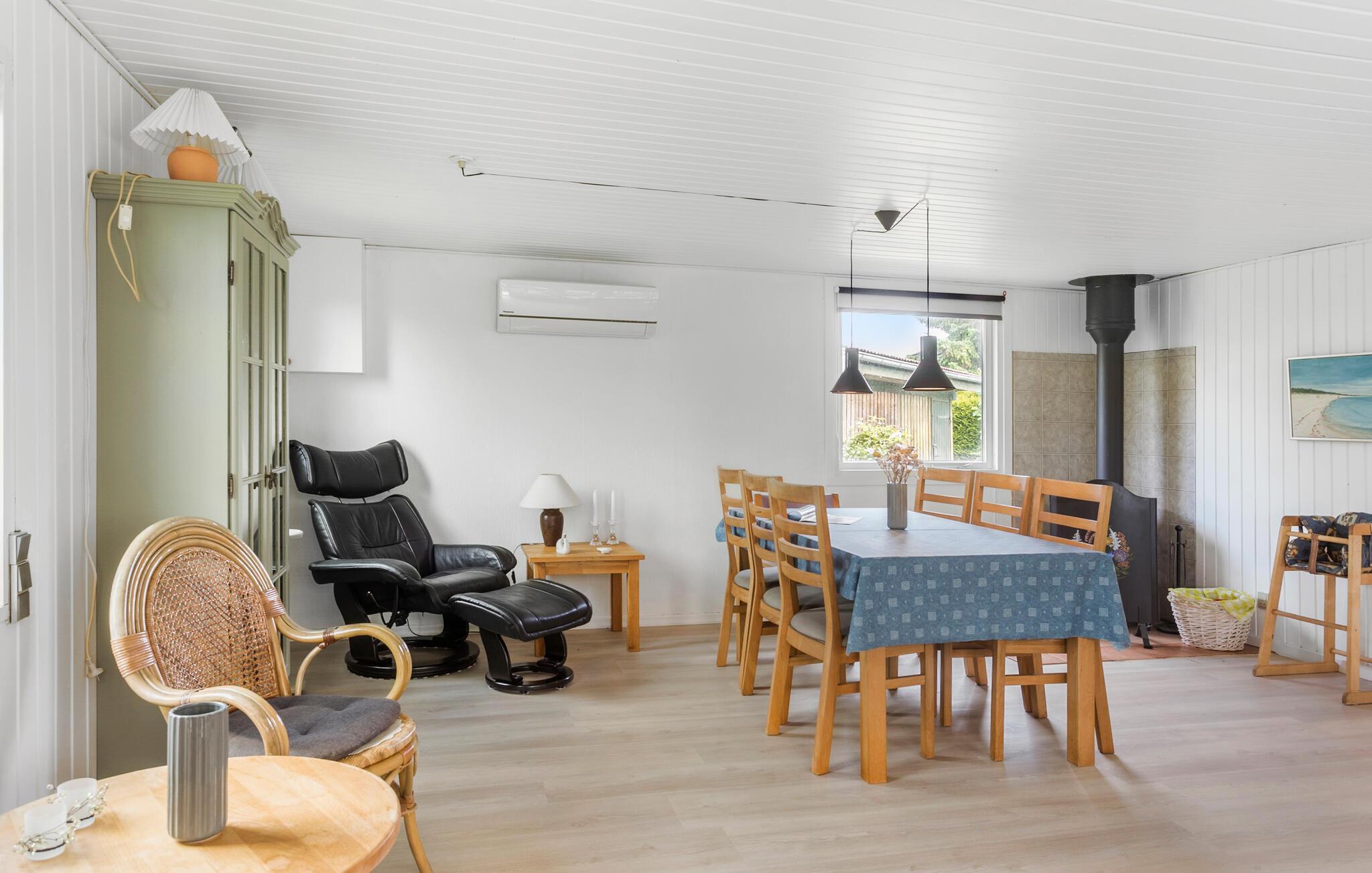 Willkommen auf der dänischen Insel Falster, wo dieses gemütliche Ferienhaus eine schöne Basis für einen erholsamen Familienurlaub bietet. Die Küche ist ideal für gemeinsames Kochen und kulinarische Urlaubsexperimente. Im behaglichen Wohnbereich, ausgestattet mit komfortablen Sesseln und einem großen Ecksofa, können Sie entspannte Filmabende verbringen oder bei Gesellschaftsspielen gesellige Stunden genießen. Das helle und freundliche Ambiente Ihres Ferienhauses sorgt für eine entspannte Urlaubsstimmung. Auf der sonnigen Terrasse und im Wintergarten können Sie die Seele baumeln lassen, während der Garten reichlich Platz für Familienspiele bietet.