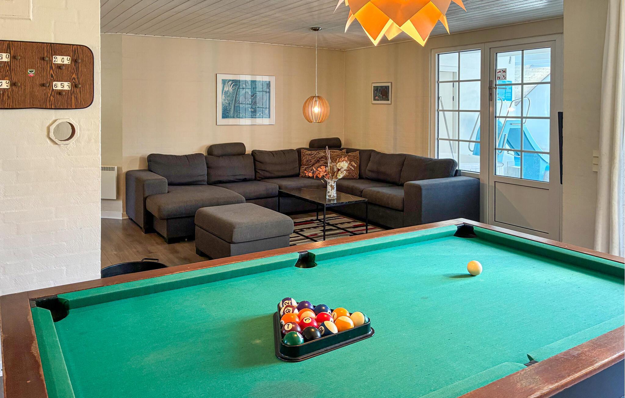 Ihr charmantes Reetdachhaus vereint Komfort, Gemütlichkeit und zahlreiche Freizeitmöglichkeiten. Entspannen Sie im großen Wohnzimmer auf den bequemen Sofas und genießen Sie den Blick in den Garten. Spielen Sie eine Runde Billard, schauen Sie gemeinsam einen Film oder lassen Sie den Abend gemütlich am Kaminofen ausklingen. Bereiten Sie in der modernen Küche köstliche Mahlzeiten zu und genießen Sie diese am langen Esstisch. Hier ist Platz für alle. Erholen Sie sich im Wellnessbereich mit Whirlpool und Sauna, während andere im Pool und auf der Rutsche Spaß haben.