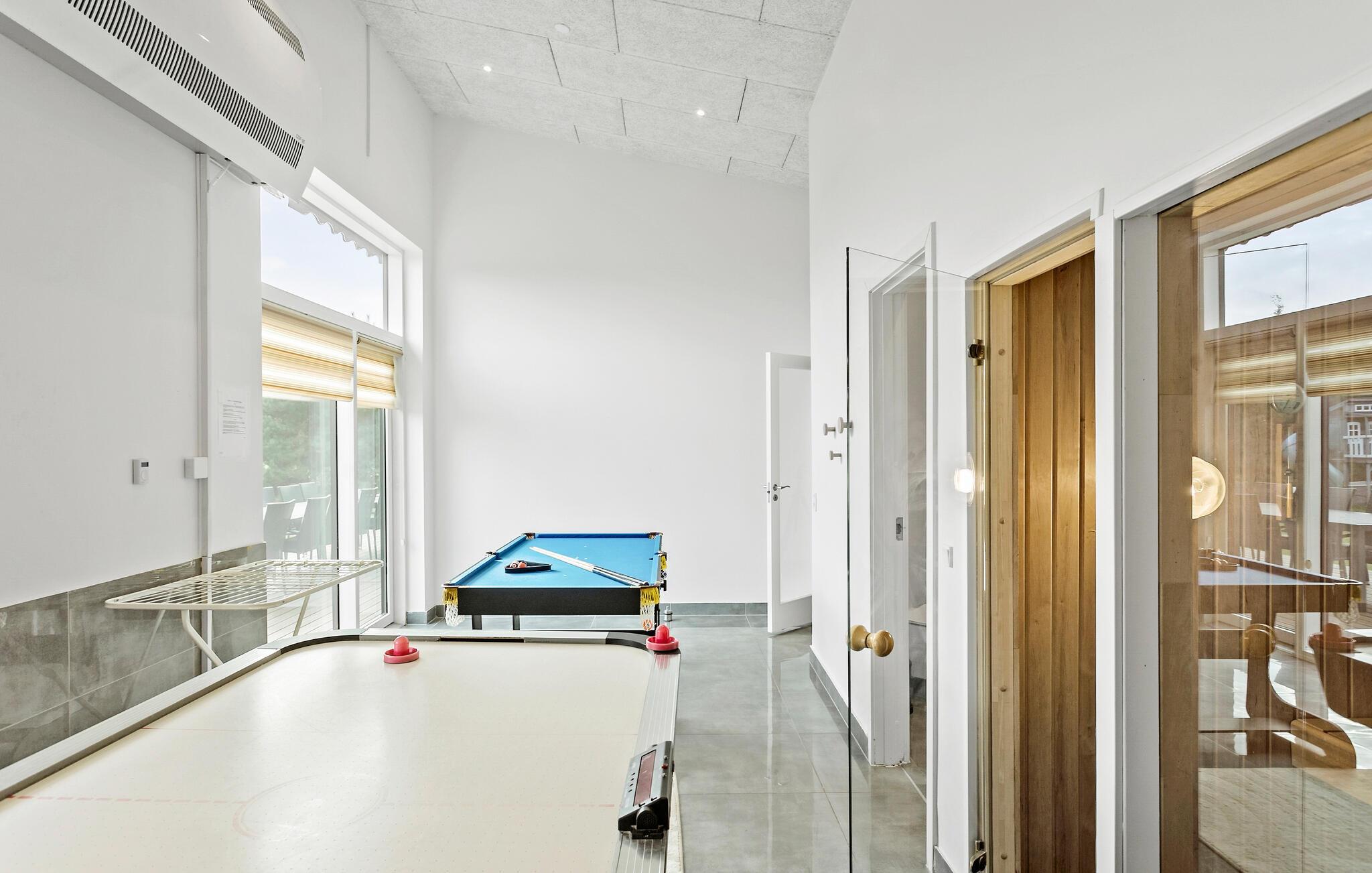 Auf der Terrasse können Sie den Grill nutzen, um köstliche Gerichte zuzubereiten, während Ihre Kinder im Garten spielen. Der großzügige Außenbereich lädt zu Aktivitäten wie Fußball oder Petanque ein. Auch das Trampolin sorgt für Spaß bei Jung und Alt. Im Innenbereich warten weitere Aktivitäten wie Billard, Tischfußball und Airhockey auf Sie. Entspannen Sie in vollen Zügen in der hauseigenen Sauna und im Whirpool.